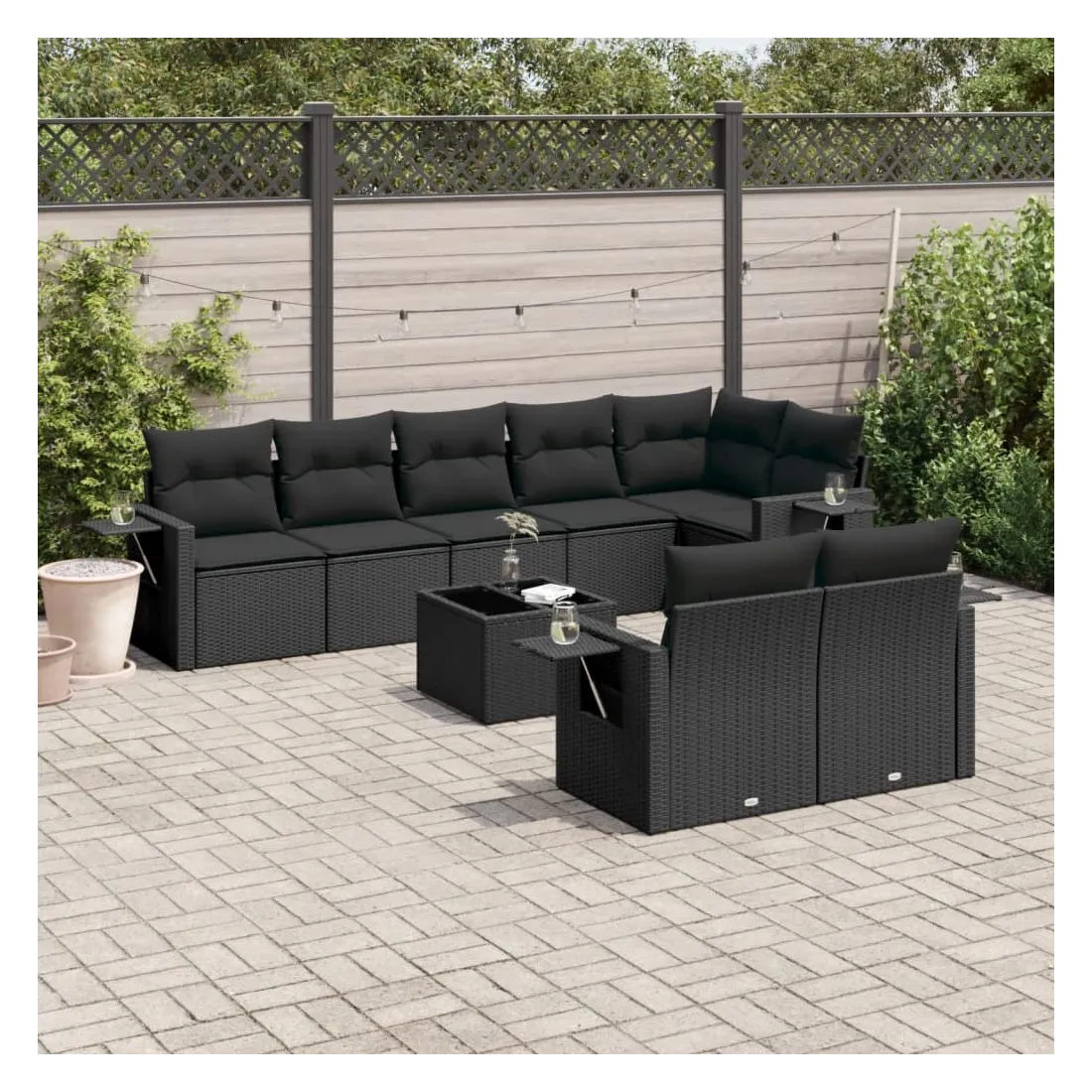 Cet ensemble de canapés de jardin est le complément parfait de votre arrière-cour, terrasse ou patio, offrant un espace confortable et accueillant pour discuter avec la famille et les amis ou simplement se détendre et profiter de l'extérieur. Matériau durable : la résine tressée, également connue sous le nom de poly rotin, est un matériau synthétique solide et nécessitant peu d'entretien qui ressemble au rotin naturel. Il est léger, facile à nettoyer et couramment utilisé pour les meubles d'extérieur en raison de sa durabilité et de ses propriétés de résistance aux intempéries.Dessus en verre : le dessus de la table d'extérieur est fabriqué en verre trempé solide et durable, ce qui le rend facile à nettoyer avec un chiffon humide et ajoute une touche d'élégance à votre espace extérieur. Table d'appoint pratique : ce mobilier d'extérieur comprend des tables d'appoint pliables avec un ressort à gaz sur les accoudoirs, offrant des endroits pratiques pour garder vos essentiels à portée de main. Expérience d'assise confortable : ce mobilier d'extérieur, doté de coussins épais, offre une expérience d'assise confortable.Conception modulaire : cet ensemble de meubles d'extérieur a une conception modulaire, ce qui le rend complètement flexible et facile à déplacer, afin que vous puissiez créer un agencement de meubles d'extérieur personnalisé. Bon à savoir :Pour que vos meubles d'extérieur restent beaux, nous vous recommandons de les protéger avec une housse imperméable.