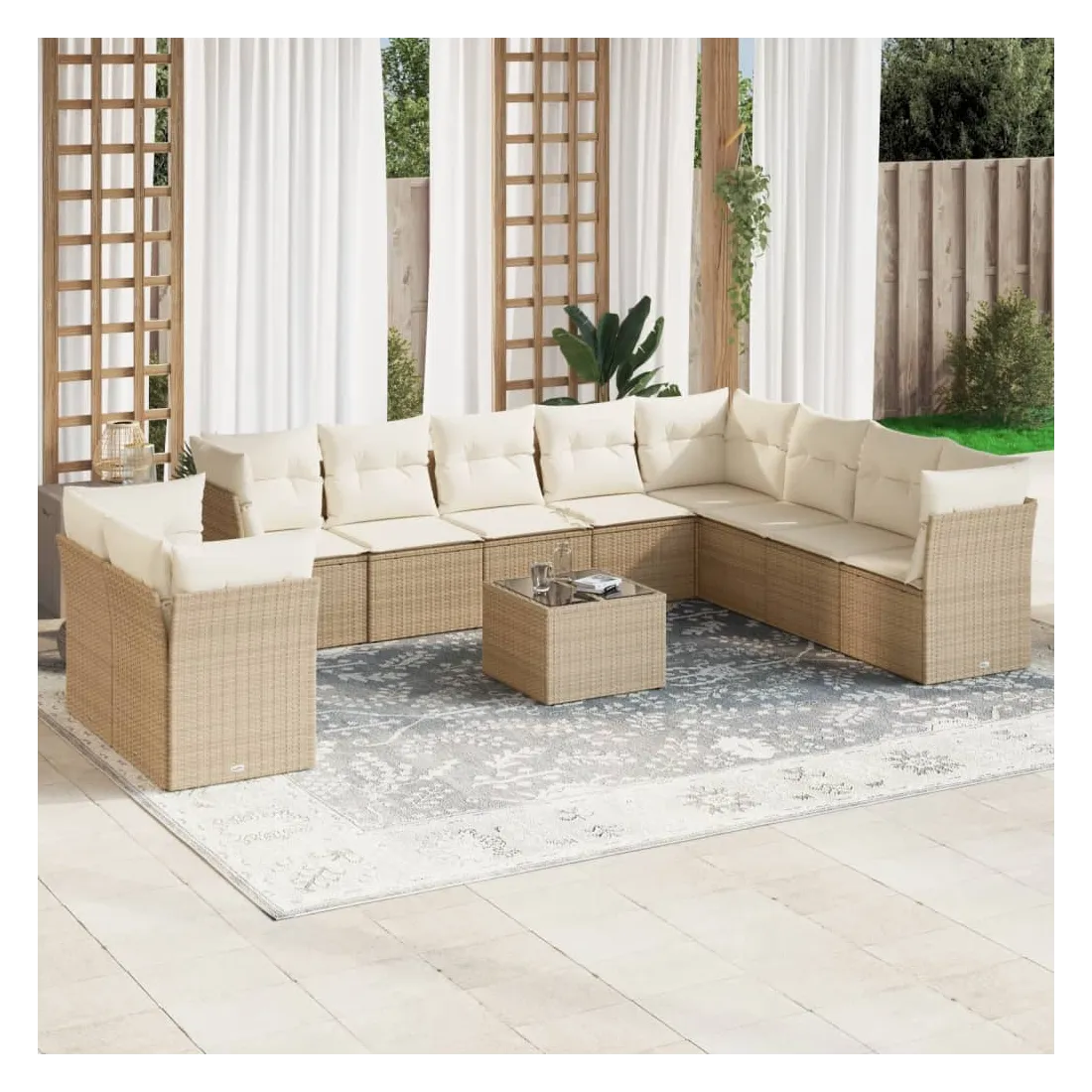 Cet ensemble de canapés de jardin est le complément parfait de votre arrière-cour, terrasse ou patio, offrant un espace confortable et accueillant pour discuter avec la famille et les amis ou simplement se détendre et profiter de l'extérieur. Matériau durable : la résine tressée, également connue sous le nom de poly rotin, est un matériau synthétique solide et nécessitant peu d'entretien qui ressemble au rotin naturel. Il est léger, facile à nettoyer et couramment utilisé pour les meubles d'extérieur en raison de sa durabilité et de ses propriétés de résistance aux intempéries.Expérience d'assise confortable : ce mobilier d'extérieur, doté de coussins épais, offre une expérience d'assise confortable.Dessus en verre : le dessus de la table d'extérieur est fabriqué en verre trempé solide et durable, ce qui le rend facile à nettoyer avec un chiffon humide et ajoute une touche d'élégance à votre espace extérieur.Housse amovible et lavable : ces coussins de siège sont dotés de housses amovibles pour un lavage et un entretien faciles.Conception modulaire : cet ensemble de meubles d'extérieur a une conception modulaire, ce qui le rend complètement flexible et facile à déplacer, afin que vous puissiez créer un agencement de meubles d'extérieur personnalisé. Bon à savoir :Pour que vos meubles d'extérieur restent beaux, nous vous recommandons de les protéger avec une housse imperméable.