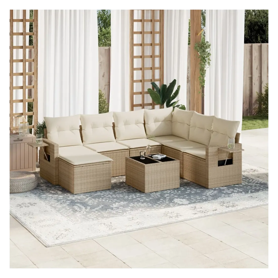 Cet ensemble de canapés de jardin est le complément parfait de votre arrière-cour, terrasse ou patio, offrant un espace confortable et accueillant pour discuter avec la famille et les amis ou simplement se détendre et profiter de l'extérieur. Matériau durable : la résine tressée, également connue sous le nom de poly rotin, est un matériau synthétique solide et nécessitant peu d'entretien qui ressemble au rotin naturel. Il est léger, facile à nettoyer et couramment utilisé pour les meubles d'extérieur en raison de sa durabilité et de ses propriétés de résistance aux intempéries.Dessus en verre : le dessus de la table d'extérieur est fabriqué en verre trempé solide et durable, ce qui le rend facile à nettoyer avec un chiffon humide et ajoute une touche d'élégance à votre espace extérieur. Table d'appoint pratique : ce mobilier d'extérieur comprend des tables d'appoint pliables avec un ressort à gaz sur les accoudoirs, offrant des endroits pratiques pour garder vos essentiels à portée de main. Expérience d'assise confortable : ce mobilier d'extérieur, doté de coussins épais, offre une expérience d'assise confortable.Conception modulaire : cet ensemble de meubles d'extérieur a une conception modulaire, ce qui le rend complètement flexible et facile à déplacer, afin que vous puissiez créer un agencement de meubles d'extérieur personnalisé. Bon à savoir :Pour que vos meubles d'extérieur restent beaux, nous vous recommandons de les protéger avec une housse imperméable.