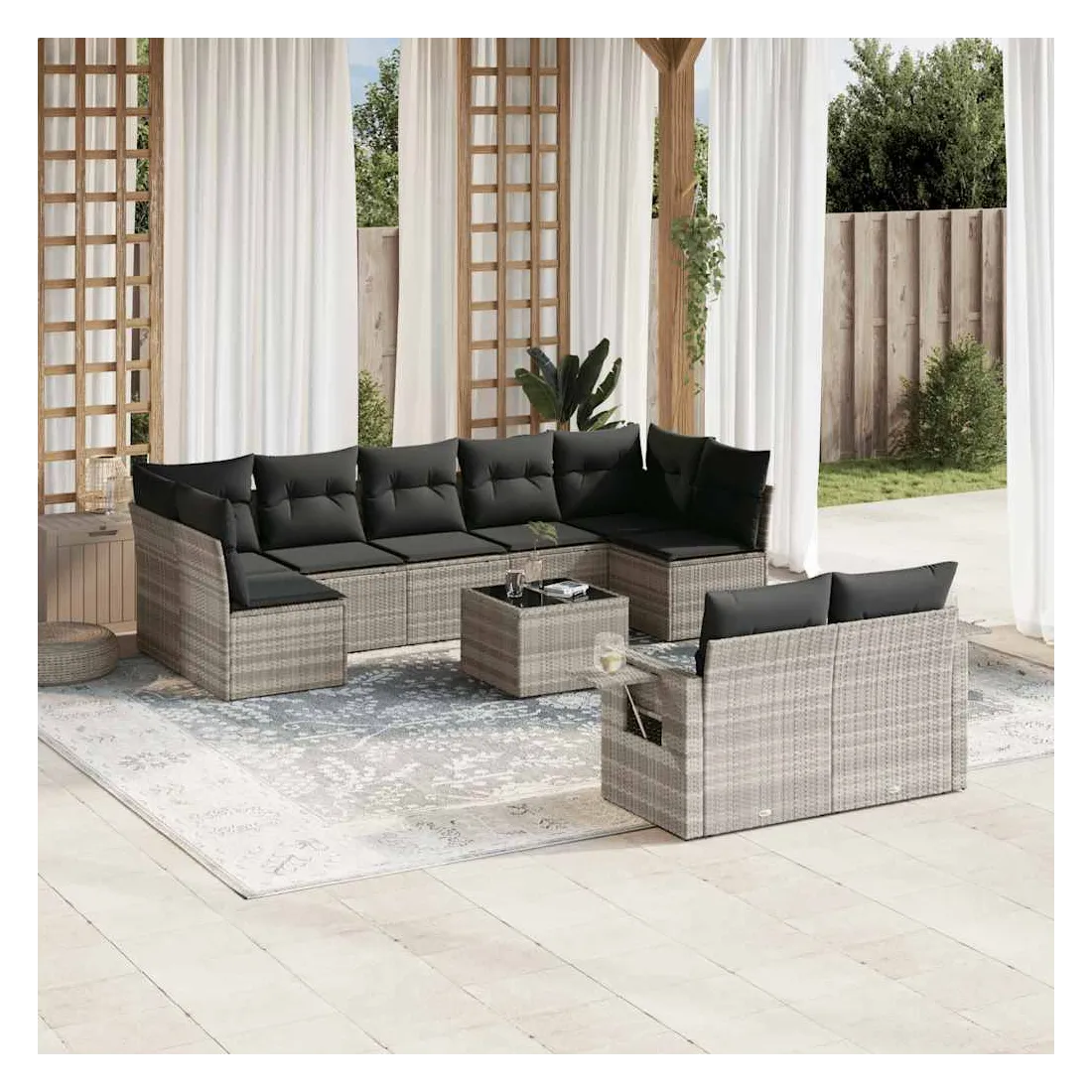 Salon de jardin avec coussins 10 pcs gris clair résine tressée