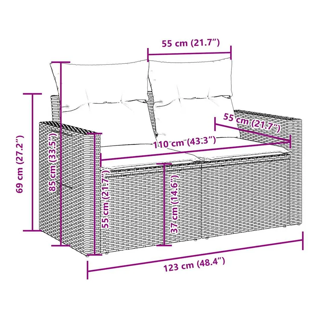 - Dimensions du coussin de dossier : 55 x 45 x 13 cm (L x l x é)