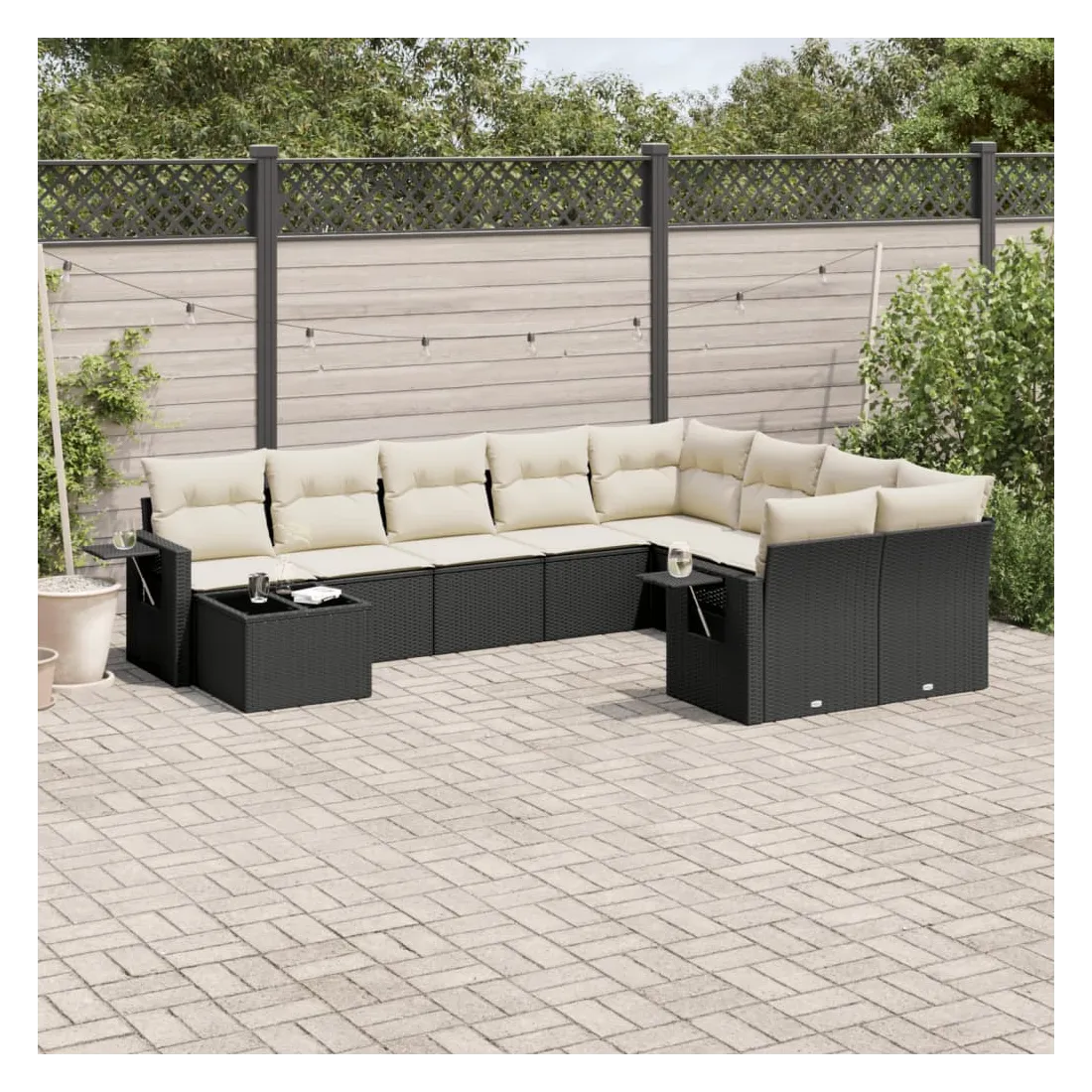 Cet ensemble de canapés de jardin est le complément parfait de votre arrière-cour, terrasse ou patio, offrant un espace confortable et accueillant pour discuter avec la famille et les amis ou simplement se détendre et profiter de l'extérieur. Matériau durable : la résine tressée, également connue sous le nom de poly rotin, est un matériau synthétique solide et nécessitant peu d'entretien qui ressemble au rotin naturel. Il est léger, facile à nettoyer et couramment utilisé pour les meubles d'extérieur en raison de sa durabilité et de ses propriétés de résistance aux intempéries.Dessus en verre : le dessus de la table d'extérieur est fabriqué en verre trempé solide et durable, ce qui le rend facile à nettoyer avec un chiffon humide et ajoute une touche d'élégance à votre espace extérieur. Table d'appoint pratique : ce mobilier d'extérieur comprend des tables d'appoint pliables avec un ressort à gaz sur les accoudoirs, offrant des endroits pratiques pour garder vos essentiels à portée de main. Expérience d'assise confortable : ce mobilier d'extérieur, doté de coussins épais, offre une expérience d'assise confortable.Conception modulaire : cet ensemble de meubles d'extérieur a une conception modulaire, ce qui le rend complètement flexible et facile à déplacer, afin que vous puissiez créer un agencement de meubles d'extérieur personnalisé. Bon à savoir :Pour que vos meubles d'extérieur restent beaux, nous vous recommandons de les protéger avec une housse imperméable.