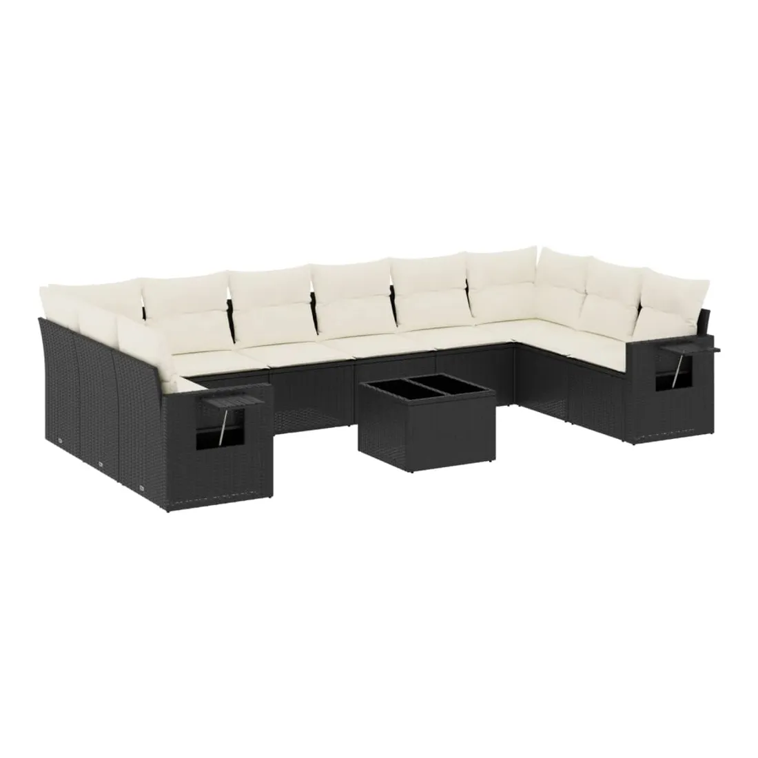 Salon de jardin 11 pcs avec coussins noir résine tressée
