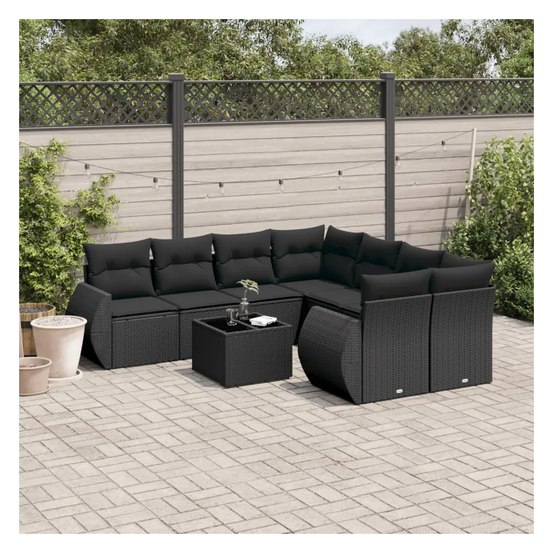 Cet ensemble de canapés de jardin est le complément parfait de votre arrière-cour, terrasse ou patio, offrant un espace confortable et accueillant pour discuter avec la famille et les amis ou simplement se détendre et profiter de l'extérieur. Matériau durable : la résine tressée, également connue sous le nom de poly rotin, est un matériau synthétique solide et nécessitant peu d'entretien qui ressemble au rotin naturel. Il est léger, facile à nettoyer et couramment utilisé pour les meubles d'extérieur en raison de sa durabilité et de ses propriétés de résistance aux intempéries.Dessus en verre : le dessus de la table d'extérieur est fabriqué en verre trempé solide et durable, ce qui le rend facile à nettoyer avec un chiffon humide et ajoute une touche d'élégance à votre espace extérieur. Expérience d'assise confortable : ce mobilier d'extérieur, doté de coussins épais, offre une expérience d'assise confortable.Housse amovible et lavable : ces coussins de siège sont dotés de housses amovibles pour un lavage et un entretien faciles.Conception modulaire : cet ensemble de meubles d'extérieur a une conception modulaire, ce qui le rend complètement flexible et facile à déplacer, afin que vous puissiez créer un agencement de meubles d'extérieur personnalisé. Bon à savoir :Pour que vos meubles d'extérieur restent beaux, nous vous recommandons de les protéger avec une housse imperméable.