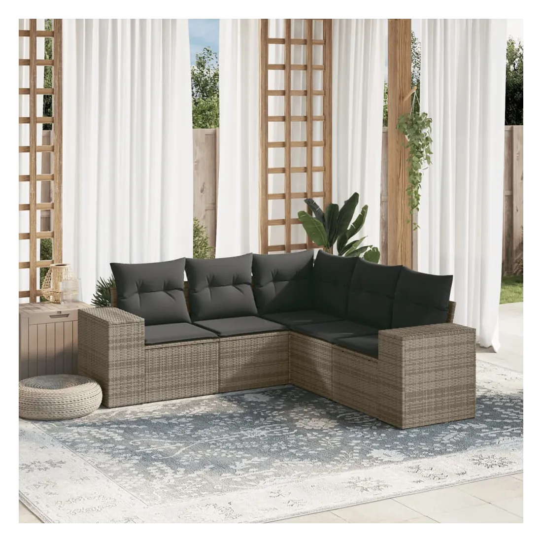Salon de jardin 5 pcs avec coussins gris résine tressée