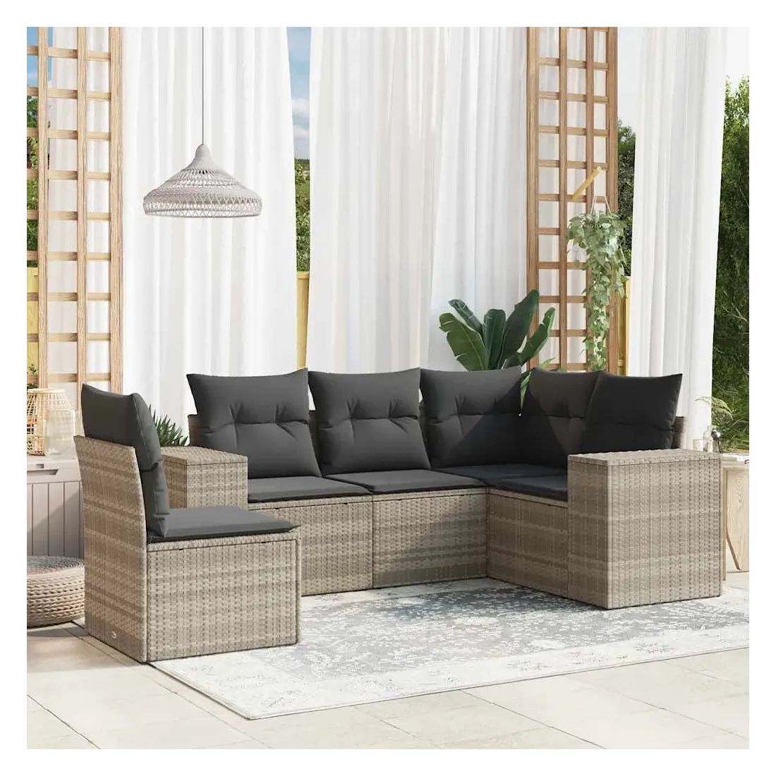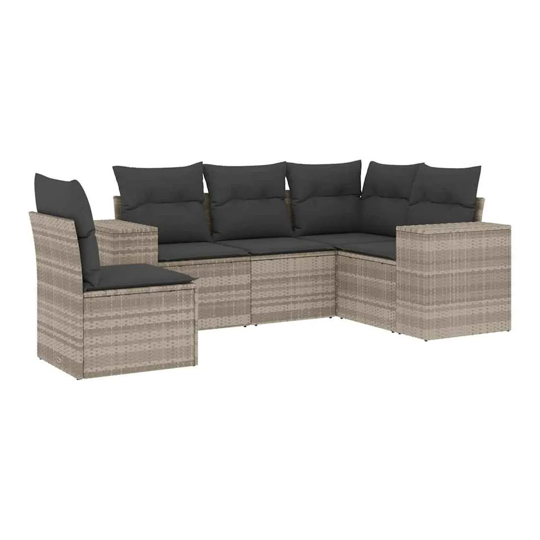 Salon de jardin 5 pcs avec coussins gris clair résine tressée