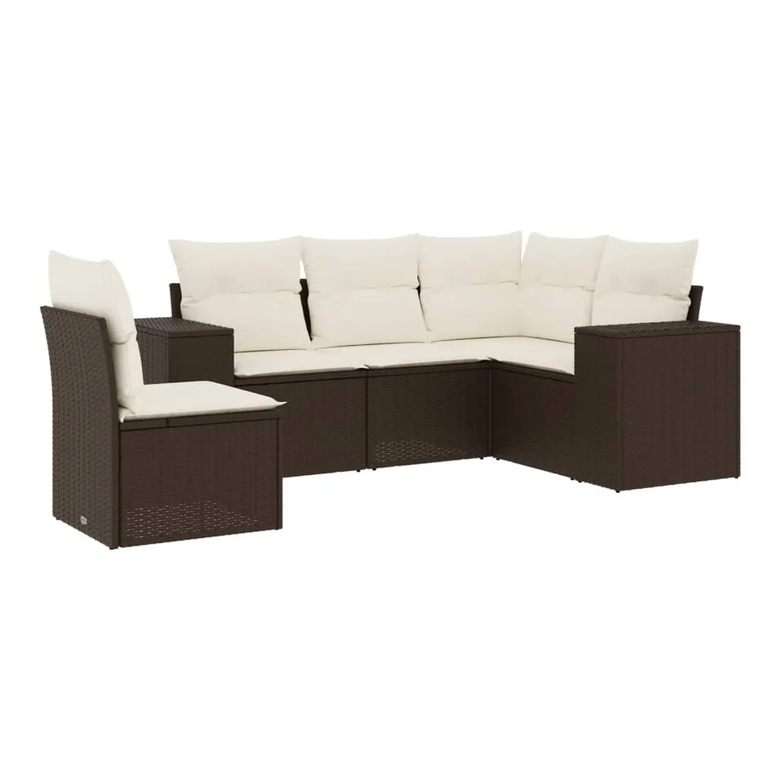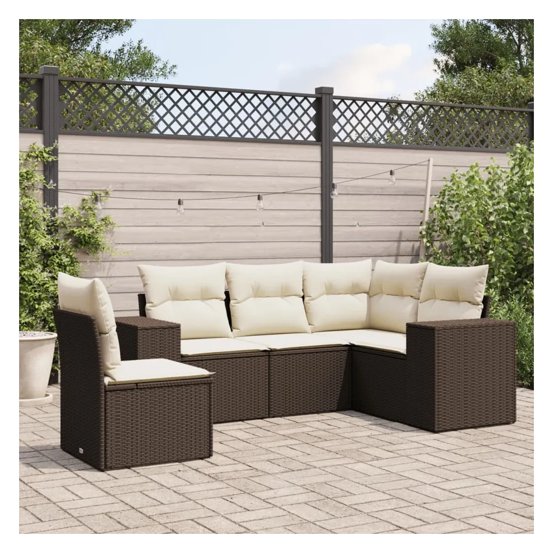 Salon de jardin avec coussins 5 pcs marron résine tressée