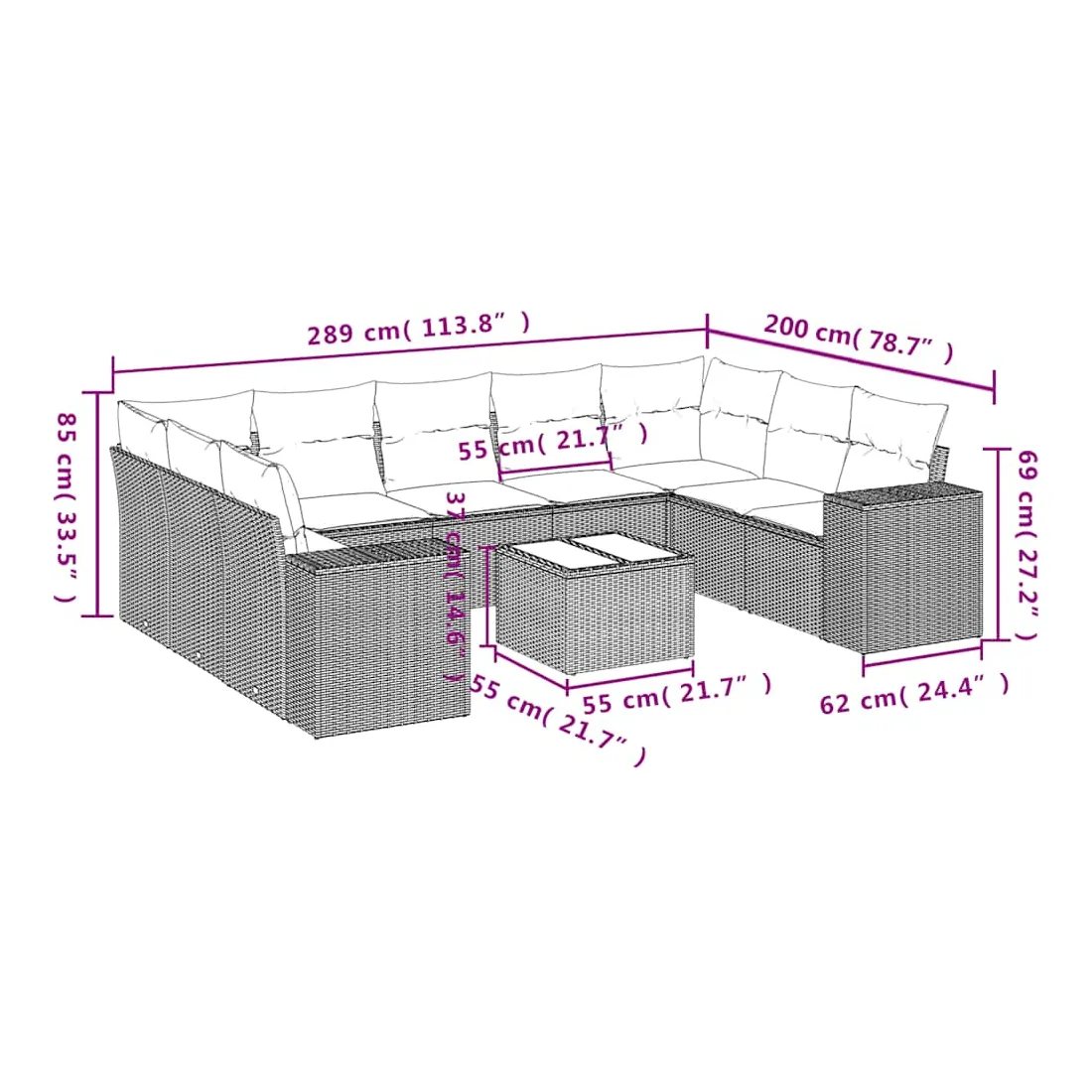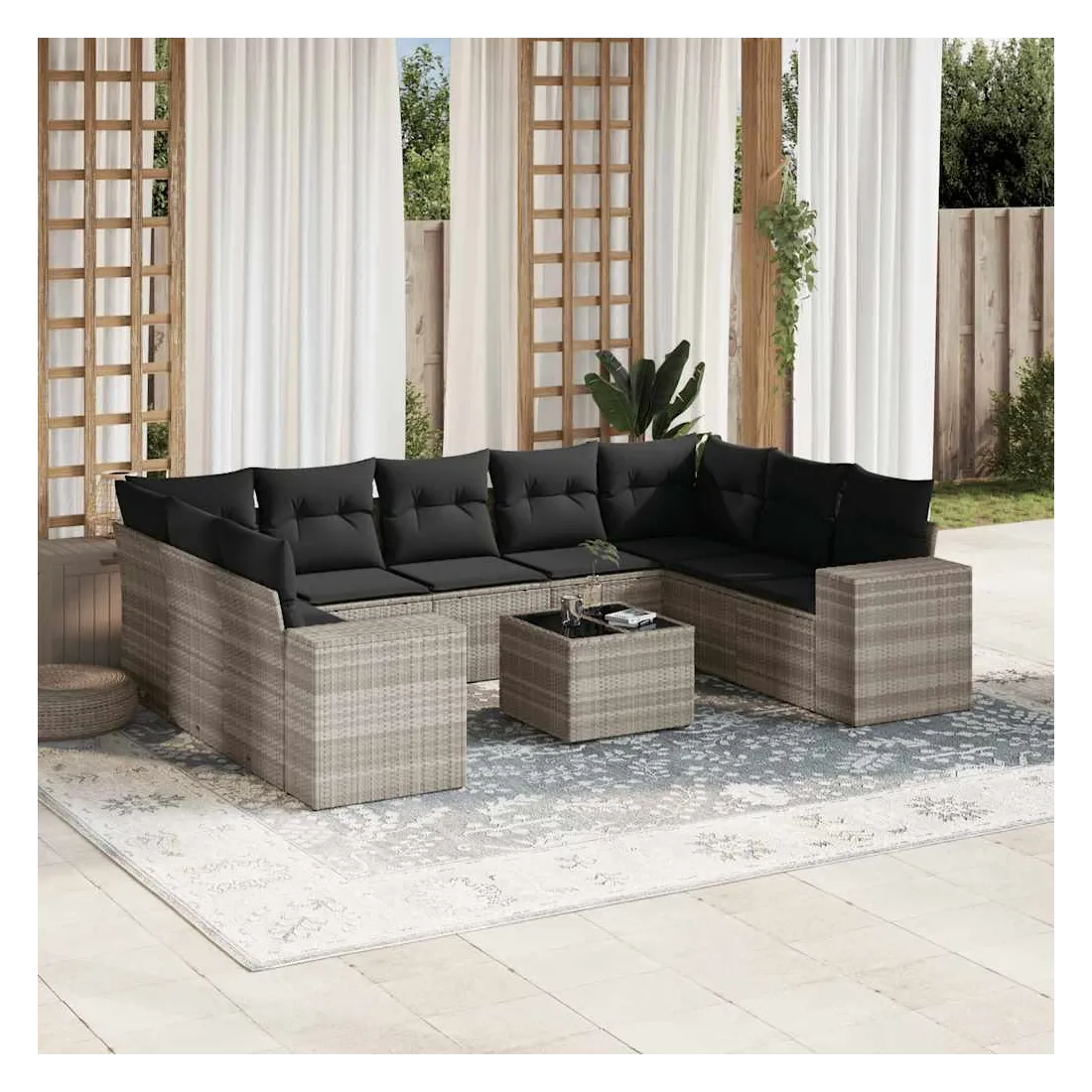 Salon de jardin avec coussins 10 pcs gris clair résine tressée