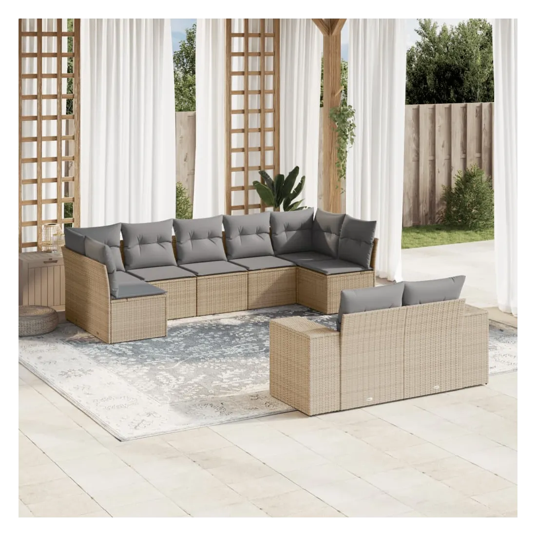 Salon de jardin avec coussins 9 pcs beige résine tressée