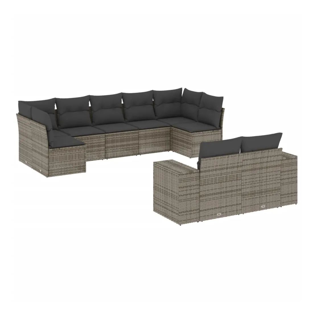 Salon de jardin 9 pcs avec coussins gris résine tressée