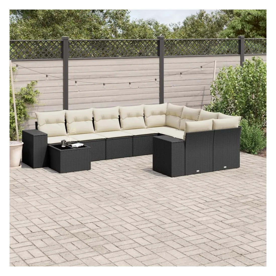 Cet ensemble de canapés de jardin est le complément parfait de votre arrière-cour, terrasse ou patio, offrant un espace confortable et accueillant pour discuter avec la famille et les amis ou simplement se détendre et profiter de l'extérieur. Matériau durable : la résine tressée, également connue sous le nom de poly rotin, est un matériau synthétique solide et nécessitant peu d'entretien qui ressemble au rotin naturel. Il est léger, facile à nettoyer et couramment utilisé pour les meubles d'extérieur en raison de sa durabilité et de ses propriétés de résistance aux intempéries.Expérience d'assise confortable : ce mobilier d'extérieur, doté de coussins épais, offre une expérience d'assise confortable.Dessus en verre : le dessus de la table d'extérieur est fabriqué en verre trempé solide et durable, ce qui le rend facile à nettoyer avec un chiffon humide et ajoute une touche d'élégance à votre espace extérieur.Housse amovible et lavable : ces coussins de siège sont dotés de housses amovibles pour un lavage et un entretien faciles.Conception modulaire : cet ensemble de meubles d'extérieur a une conception modulaire, ce qui le rend complètement flexible et facile à déplacer, afin que vous puissiez créer un agencement de meubles d'extérieur personnalisé. Bon à savoir :Pour que vos meubles d'extérieur restent beaux, nous vous recommandons de les protéger avec une housse imperméable.
