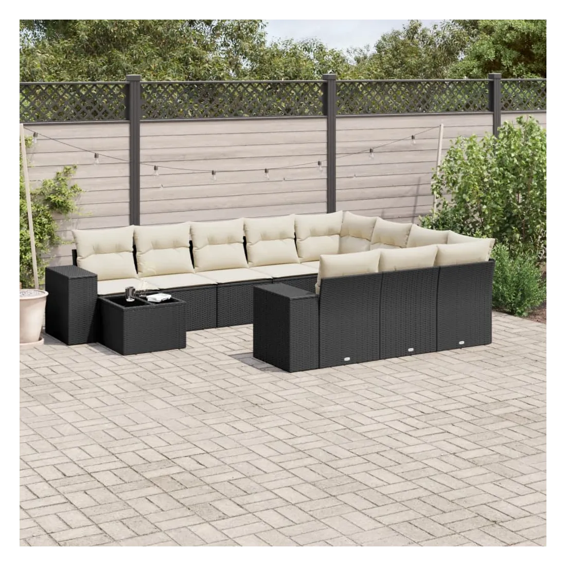 Salon de jardin 11 pcs avec coussins noir résine tressée