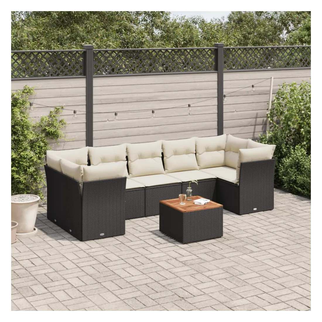 Salon de jardin 8 pcs avec coussins noir résine tressée
