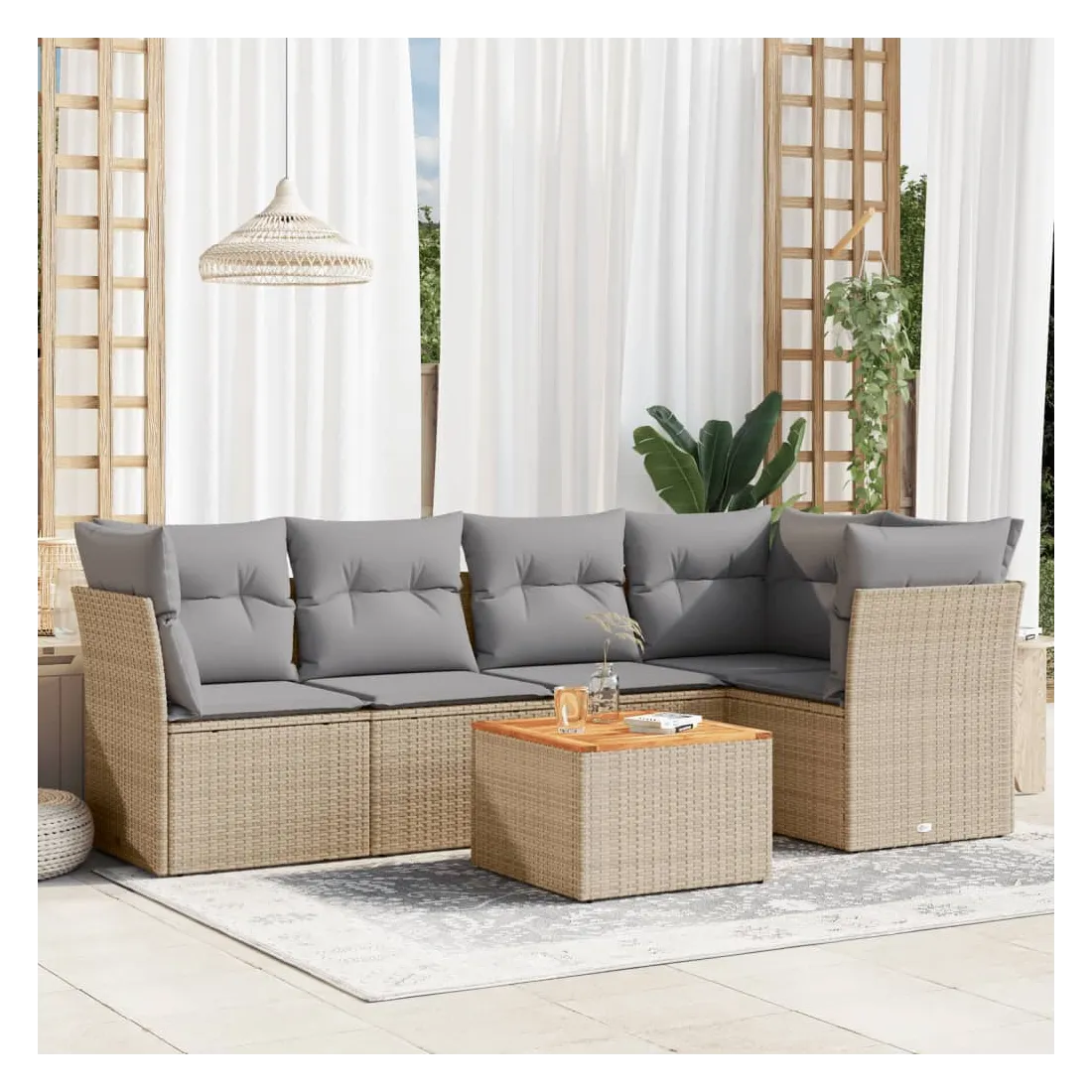 Cet ensemble de canapés de jardin est le complément parfait de votre arrière-cour, terrasse ou patio, offrant un espace confortable et accueillant pour discuter avec la famille et les amis ou simplement se détendre et profiter de l'extérieur. Matériau durable : la résine tressée, également connue sous le nom de poly rotin, est un matériau synthétique solide et nécessitant peu d'entretien qui ressemble au rotin naturel. Il est léger, facile à nettoyer et couramment utilisé pour les meubles d'extérieur en raison de sa durabilité et de ses propriétés de résistance aux intempéries.Expérience d'assise confortable : ce mobilier d'extérieur, doté de coussins épais, offre une expérience d'assise confortable.Dessus stable et facile à nettoyer : cette table de jardin a un dessus en bois d'acacia robuste, durable et facile à nettoyer avec un chiffon humide.Housse amovible et lavable : ces coussins de siège sont dotés de housses amovibles pour un lavage et un entretien faciles.Conception modulaire : cet ensemble de meubles d'extérieur a une conception modulaire, ce qui le rend complètement flexible et facile à déplacer, afin que vous puissiez créer un agencement de meubles d'extérieur personnalisé. Bon à savoir :Pour que vos meubles d'extérieur restent beaux, nous vous recommandons de les protéger avec une housse imperméable.