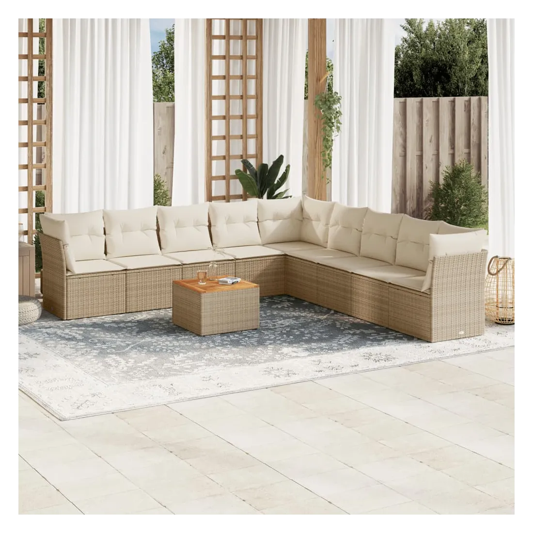 Cet ensemble de canapés de jardin est le complément parfait de votre arrière-cour, terrasse ou patio, offrant un espace confortable et accueillant pour discuter avec la famille et les amis ou simplement se détendre et profiter de l'extérieur. Matériau durable : la résine tressée, également connue sous le nom de poly rotin, est un matériau synthétique solide et nécessitant peu d'entretien qui ressemble au rotin naturel. Il est léger, facile à nettoyer et couramment utilisé pour les meubles d'extérieur en raison de sa durabilité et de ses propriétés de résistance aux intempéries.Expérience d'assise confortable : ce mobilier d'extérieur, doté de coussins épais, offre une expérience d'assise confortable.Dessus stable et facile à nettoyer : cette table de jardin a un dessus en bois d'acacia robuste, durable et facile à nettoyer avec un chiffon humide.Housse amovible et lavable : ces coussins de siège sont dotés de housses amovibles pour un lavage et un entretien faciles.Conception modulaire : cet ensemble de meubles d'extérieur a une conception modulaire, ce qui le rend complètement flexible et facile à déplacer, afin que vous puissiez créer un agencement de meubles d'extérieur personnalisé. Bon à savoir :Pour que vos meubles d'extérieur restent beaux, nous vous recommandons de les protéger avec une housse imperméable.