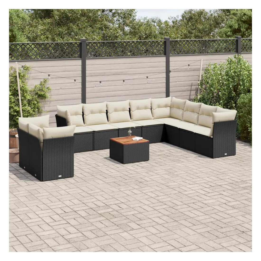 Cet ensemble de canapés de jardin est le complément parfait de votre arrière-cour, terrasse ou patio, offrant un espace confortable et accueillant pour discuter avec la famille et les amis ou simplement se détendre et profiter de l'extérieur. Matériau durable : la résine tressée, également connue sous le nom de poly rotin, est un matériau synthétique solide et nécessitant peu d'entretien qui ressemble au rotin naturel. Il est léger, facile à nettoyer et couramment utilisé pour les meubles d'extérieur en raison de sa durabilité et de ses propriétés de résistance aux intempéries.Expérience d'assise confortable : ce mobilier d'extérieur, doté de coussins épais, offre une expérience d'assise confortable.Dessus stable et facile à nettoyer : cette table de jardin a un dessus en bois d'acacia robuste, durable et facile à nettoyer avec un chiffon humide.Housse amovible et lavable : ces coussins de siège sont dotés de housses amovibles pour un lavage et un entretien faciles.Conception modulaire : cet ensemble de meubles d'extérieur a une conception modulaire, ce qui le rend complètement flexible et facile à déplacer, afin que vous puissiez créer un agencement de meubles d'extérieur personnalisé. Bon à savoir :Pour que vos meubles d'extérieur restent beaux, nous vous recommandons de les protéger avec une housse imperméable.