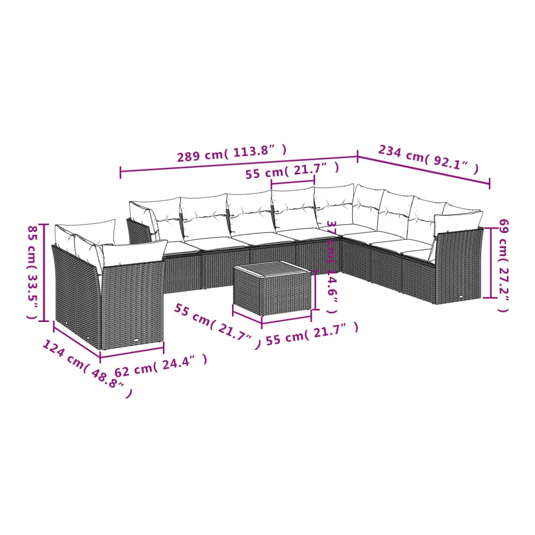 - Dimensions du coussin de siège : 55 x 55 x 3 cm (l x P x é)
