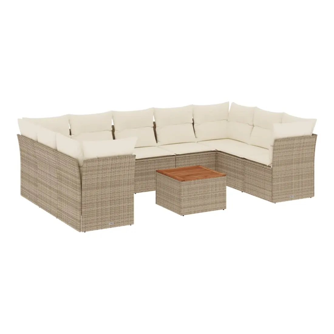Salon de jardin avec coussins 10 pcs beige résine tressée