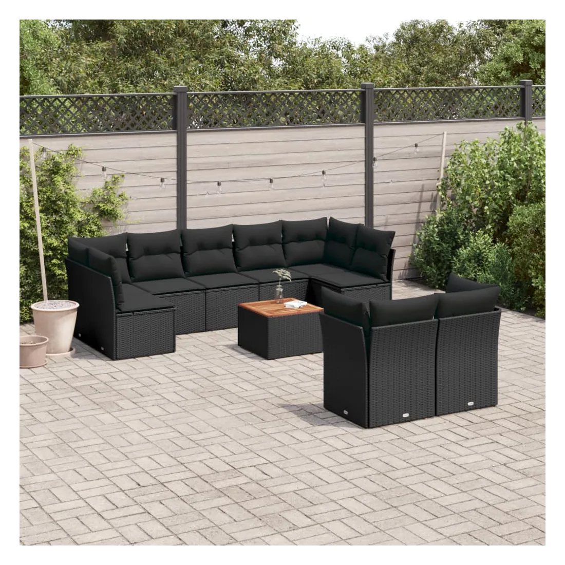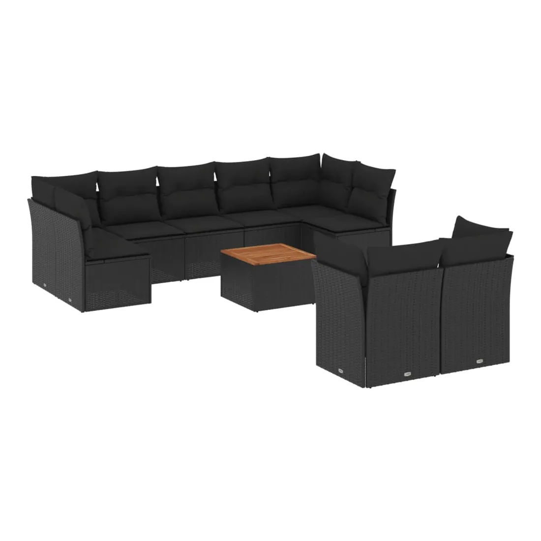 Salon de jardin 10 pcs avec coussins noir résine tressée