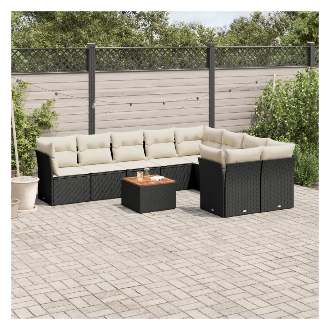 Cet ensemble de canapés de jardin est le complément parfait de votre arrière-cour, terrasse ou patio, offrant un espace confortable et accueillant pour discuter avec la famille et les amis ou simplement se détendre et profiter de l'extérieur. Matériau durable : la résine tressée, également connue sous le nom de poly rotin, est un matériau synthétique solide et nécessitant peu d'entretien qui ressemble au rotin naturel. Il est léger, facile à nettoyer et couramment utilisé pour les meubles d'extérieur en raison de sa durabilité et de ses propriétés de résistance aux intempéries.Expérience d'assise confortable : ce mobilier d'extérieur, doté de coussins épais, offre une expérience d'assise confortable.Dessus stable et facile à nettoyer : cette table de jardin a un dessus en bois d'acacia robuste, durable et facile à nettoyer avec un chiffon humide.Housse amovible et lavable : ces coussins de siège sont dotés de housses amovibles pour un lavage et un entretien faciles.Conception modulaire : cet ensemble de meubles d'extérieur a une conception modulaire, ce qui le rend complètement flexible et facile à déplacer, afin que vous puissiez créer un agencement de meubles d'extérieur personnalisé. Bon à savoir :Pour que vos meubles d'extérieur restent beaux, nous vous recommandons de les protéger avec une housse imperméable.