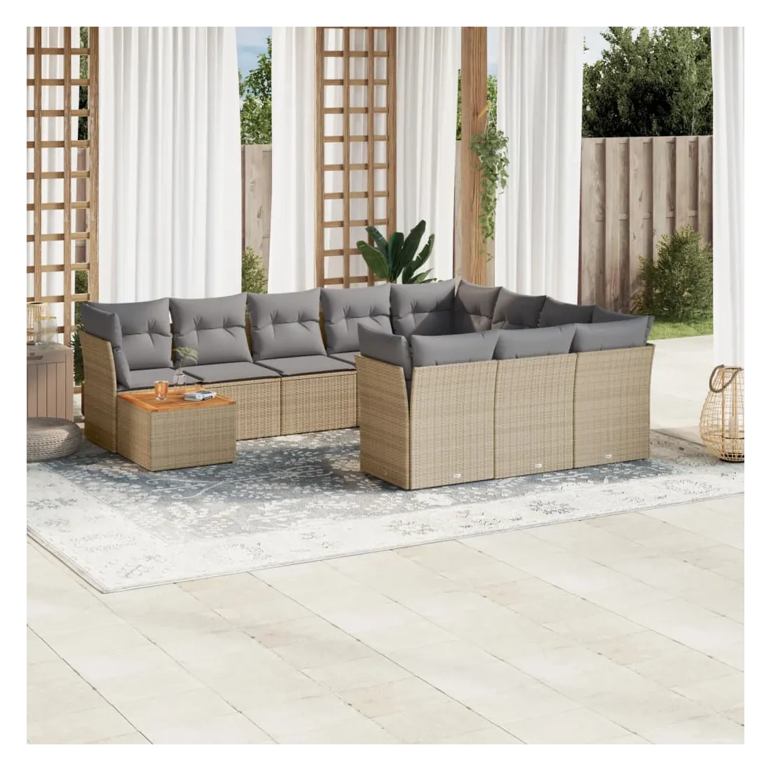 Salon de jardin 11 pcs avec coussins beige résine tressée