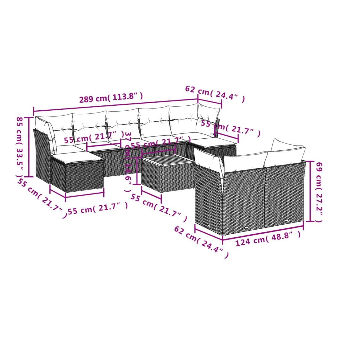 - 9 x coussin d'assise avec housse amovible et lavable
