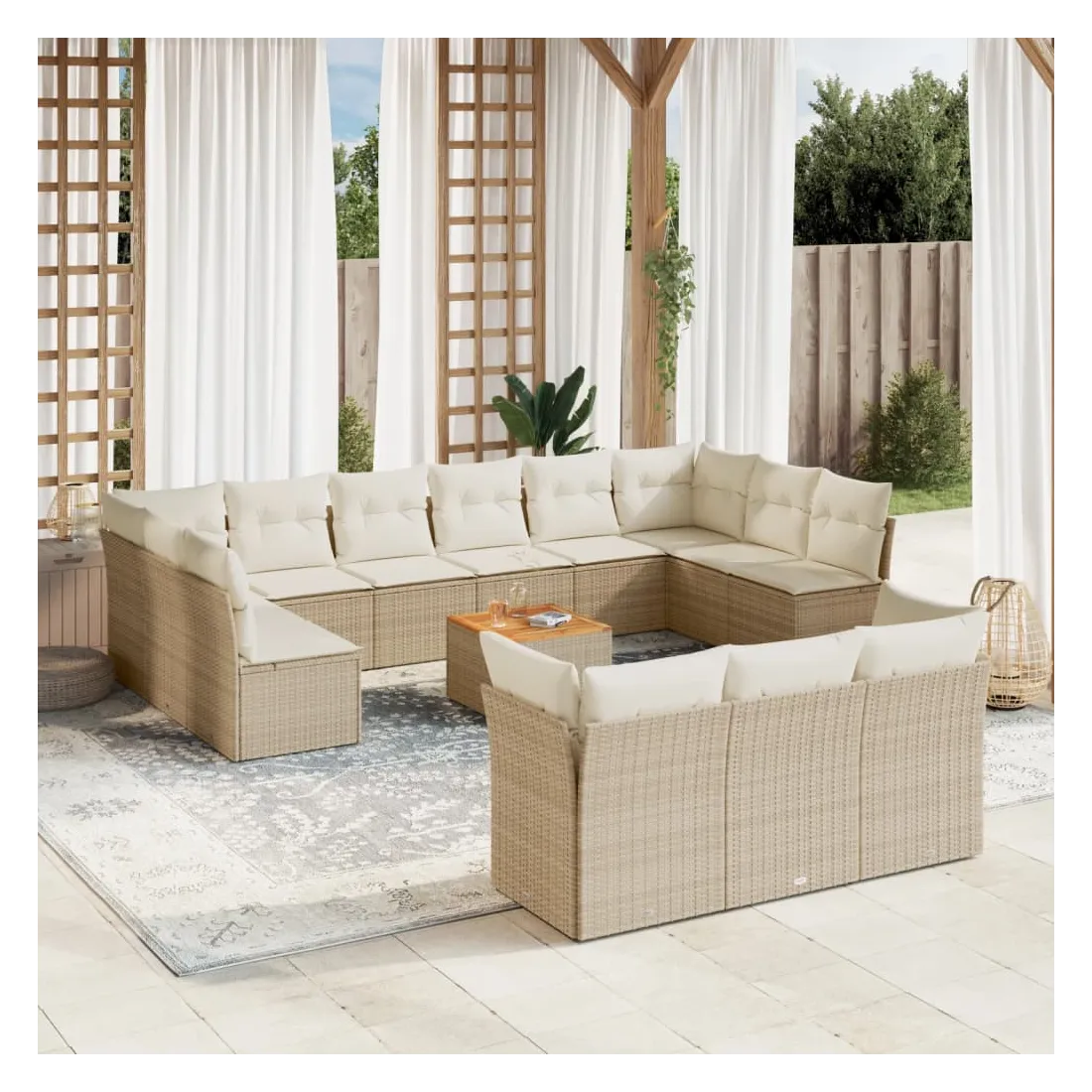 Cet ensemble de canapés de jardin est le complément parfait de votre arrière-cour, terrasse ou patio, offrant un espace confortable et accueillant pour discuter avec la famille et les amis ou simplement se détendre et profiter de l'extérieur. Matériau durable : la résine tressée, également connue sous le nom de poly rotin, est un matériau synthétique solide et nécessitant peu d'entretien qui ressemble au rotin naturel. Il est léger, facile à nettoyer et couramment utilisé pour les meubles d'extérieur en raison de sa durabilité et de ses propriétés de résistance aux intempéries.Expérience d'assise confortable : ce mobilier d'extérieur, doté de coussins épais, offre une expérience d'assise confortable.Dessus stable et facile à nettoyer : cette table de jardin a un dessus en bois d'acacia robuste, durable et facile à nettoyer avec un chiffon humide.Housse amovible et lavable : ces coussins de siège sont dotés de housses amovibles pour un lavage et un entretien faciles.Conception modulaire : cet ensemble de meubles d'extérieur a une conception modulaire, ce qui le rend complètement flexible et facile à déplacer, afin que vous puissiez créer un agencement de meubles d'extérieur personnalisé. Bon à savoir :Pour que vos meubles d'extérieur restent beaux, nous vous recommandons de les protéger avec une housse imperméable.