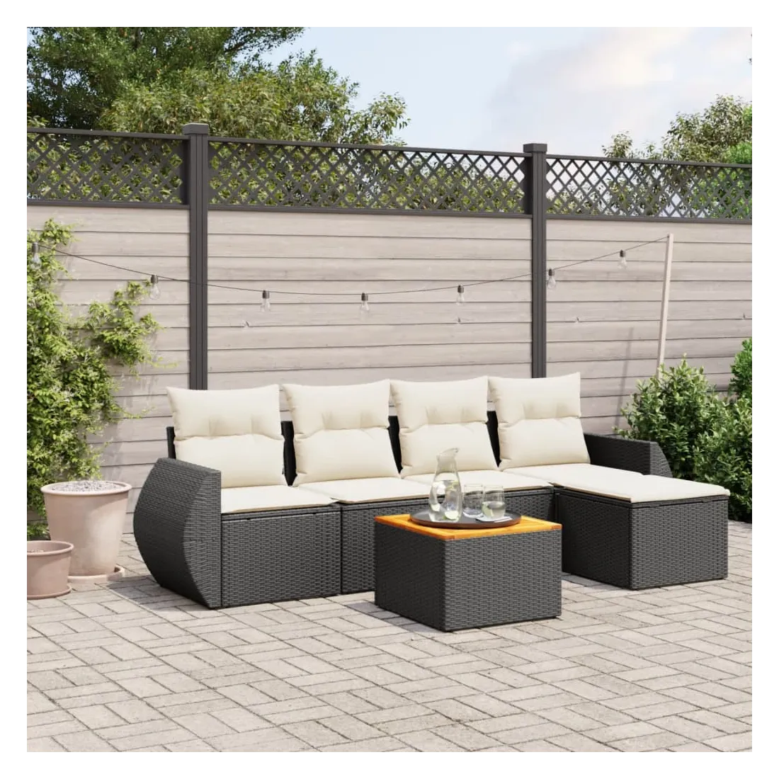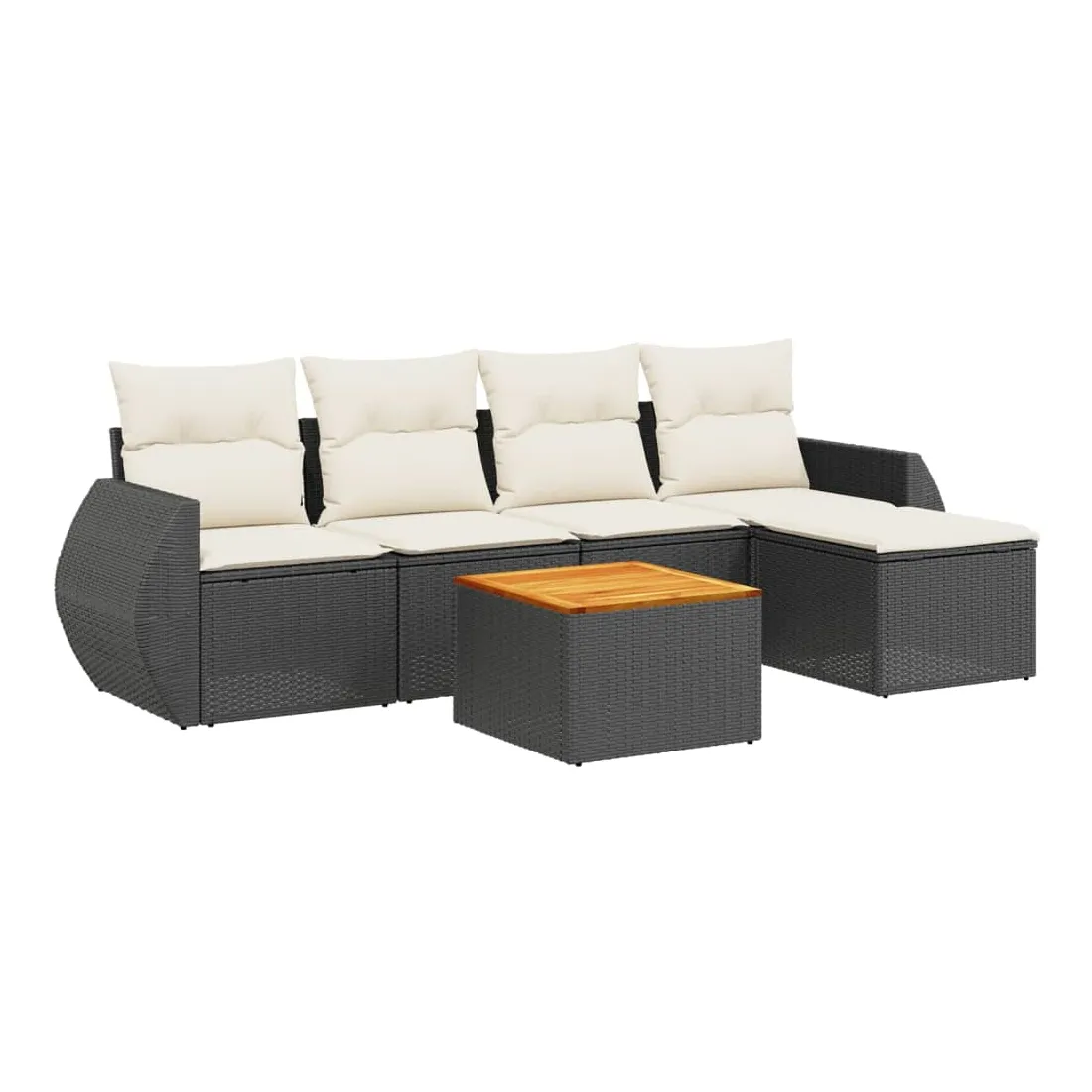 Cet ensemble de canapés de jardin est le complément parfait de votre arrière-cour, terrasse ou patio, offrant un espace confortable et accueillant pour discuter avec la famille et les amis ou simplement se détendre et profiter de l'extérieur. Matériau durable : la résine tressée, également connue sous le nom de poly rotin, est un matériau synthétique solide et nécessitant peu d'entretien qui ressemble au rotin naturel. Il est léger, facile à nettoyer et couramment utilisé pour les meubles d'extérieur en raison de sa durabilité et de ses propriétés de résistance aux intempéries.Dessus stable et facile à nettoyer : cette table de jardin a un dessus en bois d'acacia robuste, durable et facile à nettoyer avec un chiffon humide. Expérience d'assise confortable : ce mobilier d'extérieur, doté de coussins épais, offre une expérience d'assise confortable.Housse amovible et lavable : ces coussins de siège sont dotés de housses amovibles pour un lavage et un entretien faciles.Conception modulaire : cet ensemble de meubles d'extérieur a une conception modulaire, ce qui le rend complètement flexible et facile à déplacer, afin que vous puissiez créer un agencement de meubles d'extérieur personnalisé. Bon à savoir :Pour que vos meubles d'extérieur restent beaux, nous vous recommandons de les protéger avec une housse imperméable.