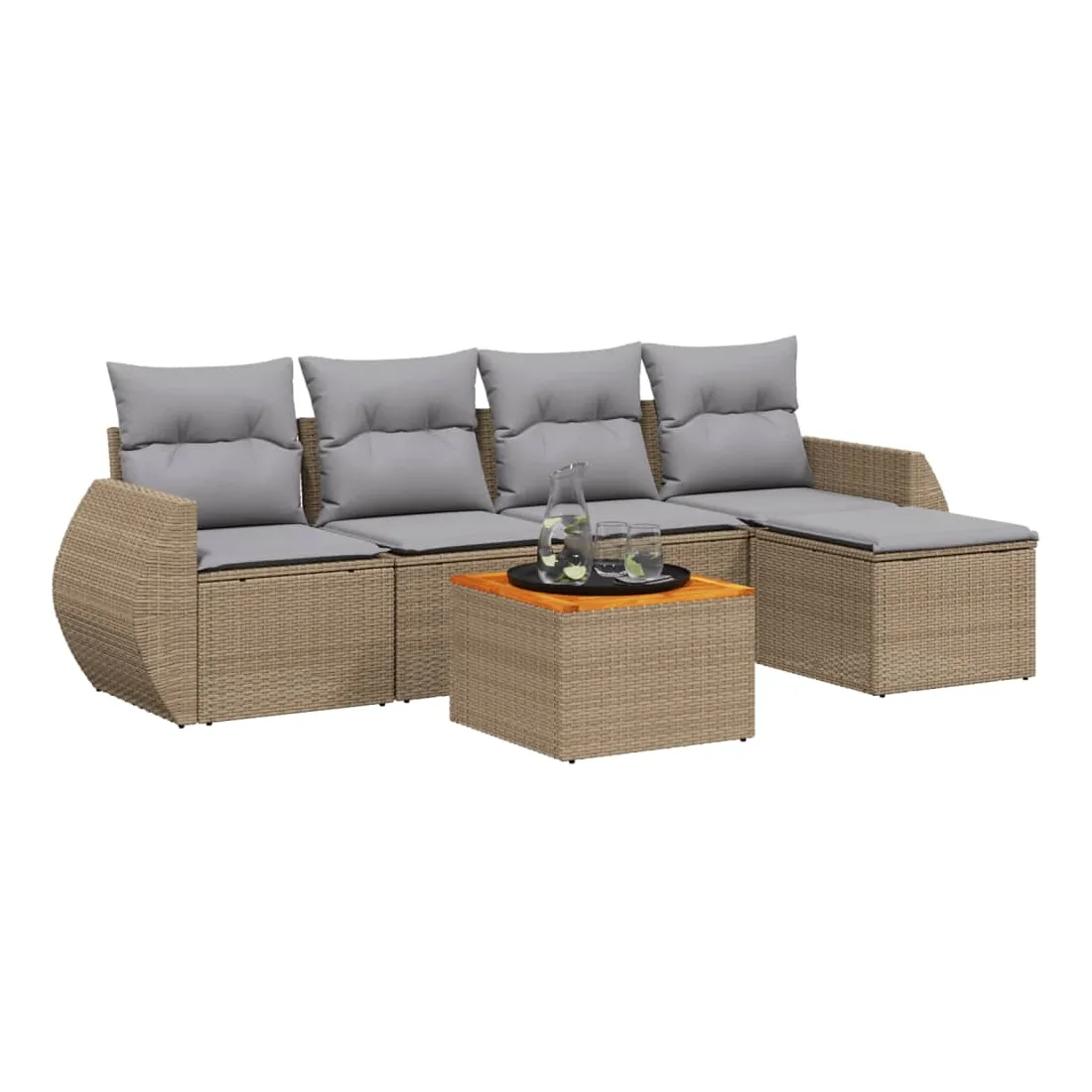 Cet ensemble de canapés de jardin est le complément parfait de votre arrière-cour, terrasse ou patio, offrant un espace confortable et accueillant pour discuter avec la famille et les amis ou simplement se détendre et profiter de l'extérieur. Matériau durable : la résine tressée, également connue sous le nom de poly rotin, est un matériau synthétique solide et nécessitant peu d'entretien qui ressemble au rotin naturel. Il est léger, facile à nettoyer et couramment utilisé pour les meubles d'extérieur en raison de sa durabilité et de ses propriétés de résistance aux intempéries.Dessus stable et facile à nettoyer : cette table de jardin a un dessus en bois d'acacia robuste, durable et facile à nettoyer avec un chiffon humide. Expérience d'assise confortable : ce mobilier d'extérieur, doté de coussins épais, offre une expérience d'assise confortable.Housse amovible et lavable : ces coussins de siège sont dotés de housses amovibles pour un lavage et un entretien faciles.Conception modulaire : cet ensemble de meubles d'extérieur a une conception modulaire, ce qui le rend complètement flexible et facile à déplacer, afin que vous puissiez créer un agencement de meubles d'extérieur personnalisé. Bon à savoir :Pour que vos meubles d'extérieur restent beaux, nous vous recommandons de les protéger avec une housse imperméable.