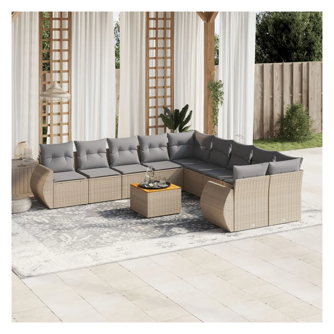 Salon de jardin 11 pcs avec coussins beige résine tressée