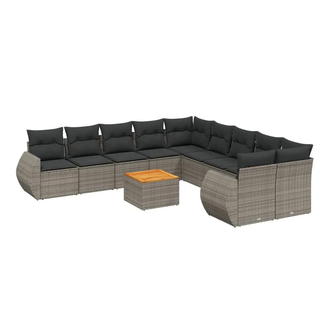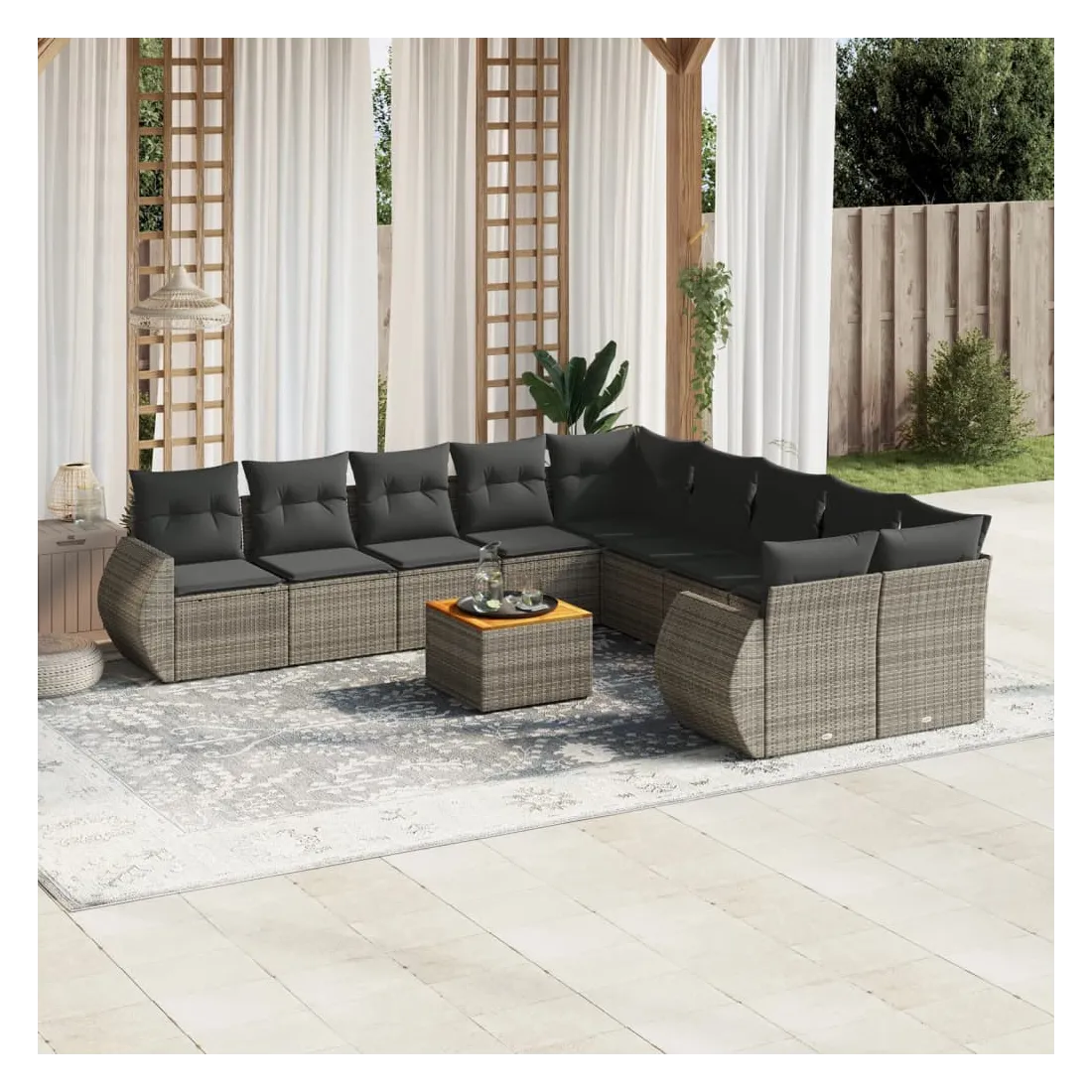 Cet ensemble de canapés de jardin est le complément parfait de votre arrière-cour, terrasse ou patio, offrant un espace confortable et accueillant pour discuter avec la famille et les amis ou simplement se détendre et profiter de l'extérieur. Matériau durable : la résine tressée, également connue sous le nom de poly rotin, est un matériau synthétique solide et nécessitant peu d'entretien qui ressemble au rotin naturel. Il est léger, facile à nettoyer et couramment utilisé pour les meubles d'extérieur en raison de sa durabilité et de ses propriétés de résistance aux intempéries.Dessus stable et facile à nettoyer : cette table de jardin a un dessus en bois d'acacia robuste, durable et facile à nettoyer avec un chiffon humide. Expérience d'assise confortable : ce mobilier d'extérieur, doté de coussins épais, offre une expérience d'assise confortable.Housse amovible et lavable : ces coussins de siège sont dotés de housses amovibles pour un lavage et un entretien faciles.Conception modulaire : cet ensemble de meubles d'extérieur a une conception modulaire, ce qui le rend complètement flexible et facile à déplacer, afin que vous puissiez créer un agencement de meubles d'extérieur personnalisé. Bon à savoir :Pour que vos meubles d'extérieur restent beaux, nous vous recommandons de les protéger avec une housse imperméable.