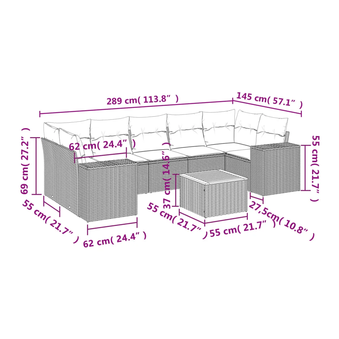 - Dimensions : 55 x 55 x 37 cm (L x l x H)