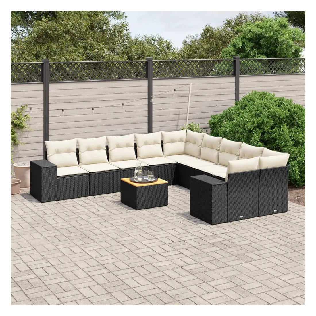 Cet ensemble de canapés de jardin est le complément parfait de votre arrière-cour, terrasse ou patio, offrant un espace confortable et accueillant pour discuter avec la famille et les amis ou simplement se détendre et profiter de l'extérieur. Matériau durable : la résine tressée, également connue sous le nom de poly rotin, est un matériau synthétique solide et nécessitant peu d'entretien qui ressemble au rotin naturel. Il est léger, facile à nettoyer et couramment utilisé pour les meubles d'extérieur en raison de sa durabilité et de ses propriétés de résistance aux intempéries.Dessus stable et facile à nettoyer : cette table de jardin a un dessus en bois d'acacia robuste, durable et facile à nettoyer avec un chiffon humide. Expérience d'assise confortable : ce mobilier d'extérieur, doté de coussins épais, offre une expérience d'assise confortable.Housse amovible et lavable : ces coussins de siège sont dotés de housses amovibles pour un lavage et un entretien faciles.Conception modulaire : cet ensemble de meubles d'extérieur a une conception modulaire, ce qui le rend complètement flexible et facile à déplacer, afin que vous puissiez créer un agencement de meubles d'extérieur personnalisé. Bon à savoir :Pour que vos meubles d'extérieur restent beaux, nous vous recommandons de les protéger avec une housse imperméable.