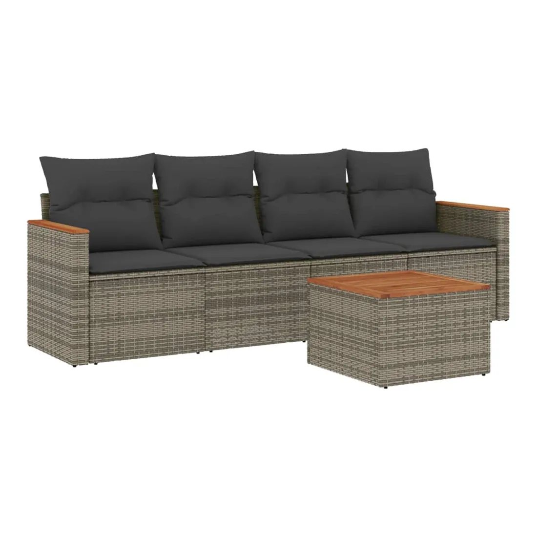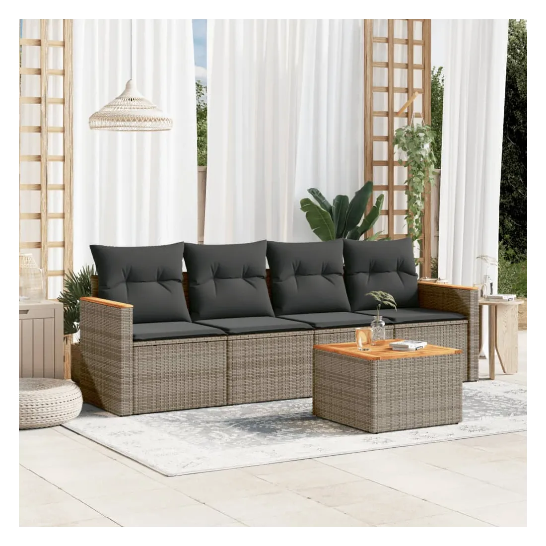Cet ensemble de canapés de jardin est le complément parfait de votre arrière-cour, terrasse ou patio, offrant un espace confortable et accueillant pour discuter avec la famille et les amis ou simplement se détendre et profiter de l'extérieur. Matériau durable : la résine tressée, également connue sous le nom de poly rotin, est un matériau synthétique solide et nécessitant peu d'entretien qui ressemble au rotin naturel. Il est léger, facile à nettoyer et couramment utilisé pour les meubles d'extérieur en raison de sa durabilité et de ses propriétés de résistance aux intempéries.Dessus stable et facile à nettoyer : cette table de jardin a un dessus en bois d'acacia robuste, durable et facile à nettoyer avec un chiffon humide.Housse amovible et lavable : ces coussins de siège sont dotés de housses amovibles pour un lavage et un entretien faciles.Cadre robuste et stable : le cadre en acier enduit de poudre assure la solidité et la stabilité du meuble de jardin pour une utilisation quotidienne à l'extérieur.Conception modulaire : cet ensemble de meubles d'extérieur a une conception modulaire, ce qui le rend complètement flexible et facile à déplacer, afin que vous puissiez créer un agencement de meubles d'extérieur personnalisé. Bon à savoir :Pour que vos meubles d'extérieur restent beaux, nous vous recommandons de les protéger avec une housse imperméable.