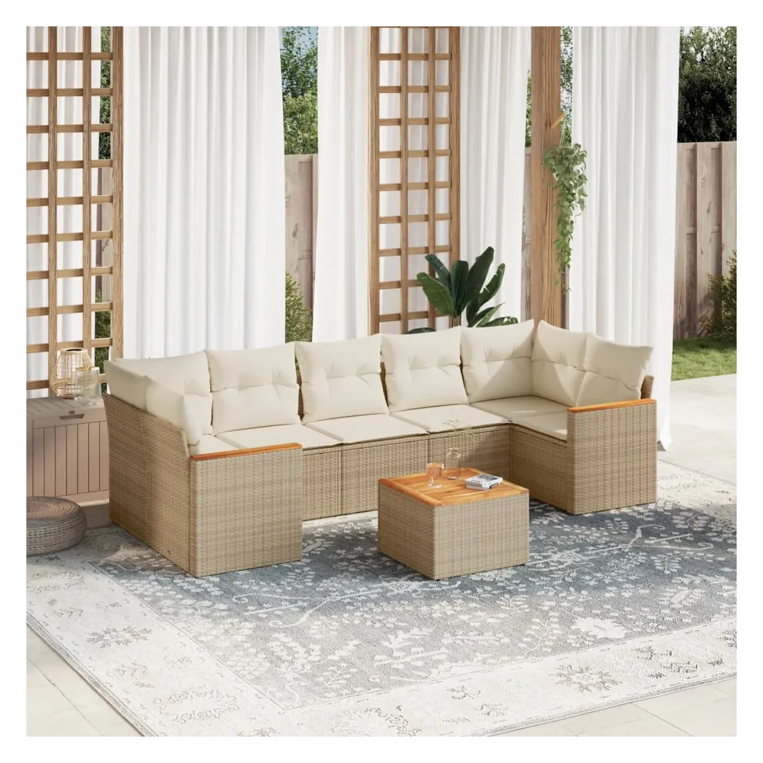 Cet ensemble de canapés de jardin est le complément parfait de votre arrière-cour, terrasse ou patio, offrant un espace confortable et accueillant pour discuter avec la famille et les amis ou simplement se détendre et profiter de l'extérieur. Matériau durable : la résine tressée, également connue sous le nom de poly rotin, est un matériau synthétique solide et nécessitant peu d'entretien qui ressemble au rotin naturel. Il est léger, facile à nettoyer et couramment utilisé pour les meubles d'extérieur en raison de sa durabilité et de ses propriétés de résistance aux intempéries.Dessus stable et facile à nettoyer : cette table de jardin a un dessus en bois d'acacia robuste, durable et facile à nettoyer avec un chiffon humide.Housse amovible et lavable : ces coussins de siège sont dotés de housses amovibles pour un lavage et un entretien faciles.Cadre robuste et stable : le cadre en acier enduit de poudre assure la solidité et la stabilité du meuble de jardin pour une utilisation quotidienne à l'extérieur.Conception modulaire : cet ensemble de meubles d'extérieur a une conception modulaire, ce qui le rend complètement flexible et facile à déplacer, afin que vous puissiez créer un agencement de meubles d'extérieur personnalisé. Bon à savoir :Pour que vos meubles d'extérieur restent beaux, nous vous recommandons de les protéger avec une housse imperméable.