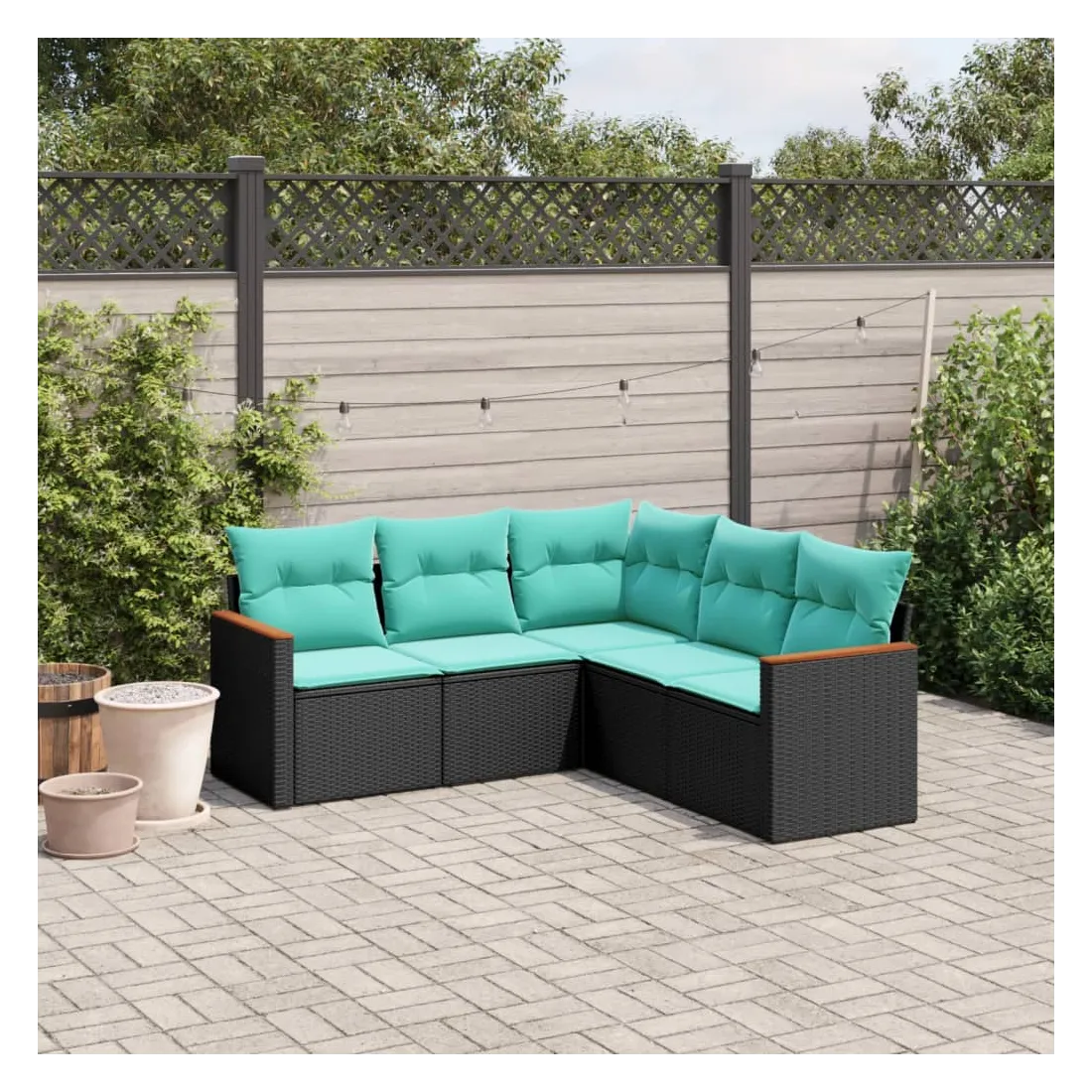 Salon de jardin 5 pcs avec coussins noir résine tressée