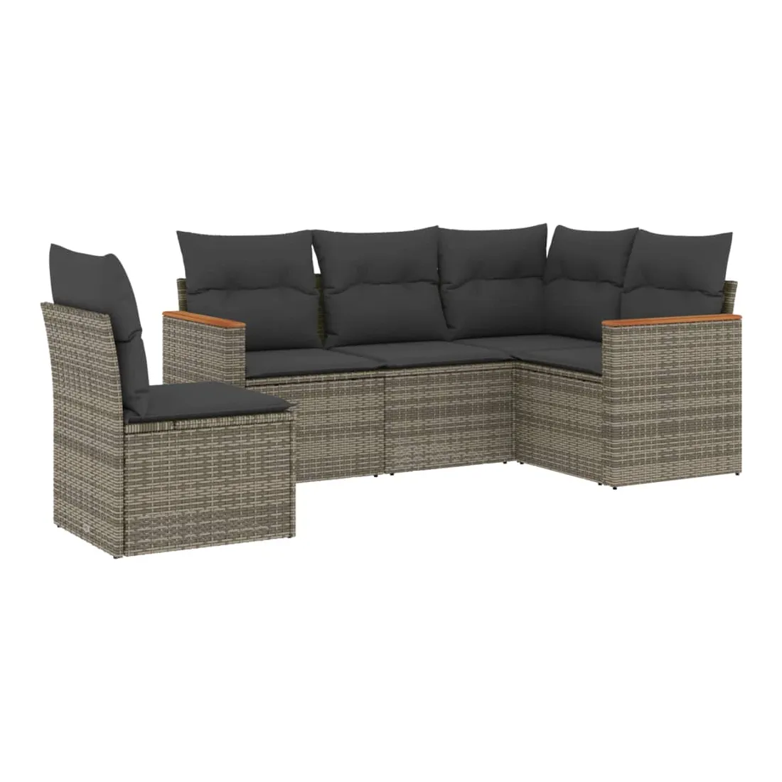 Salon de jardin 5 pcs avec coussins gris résine tressée