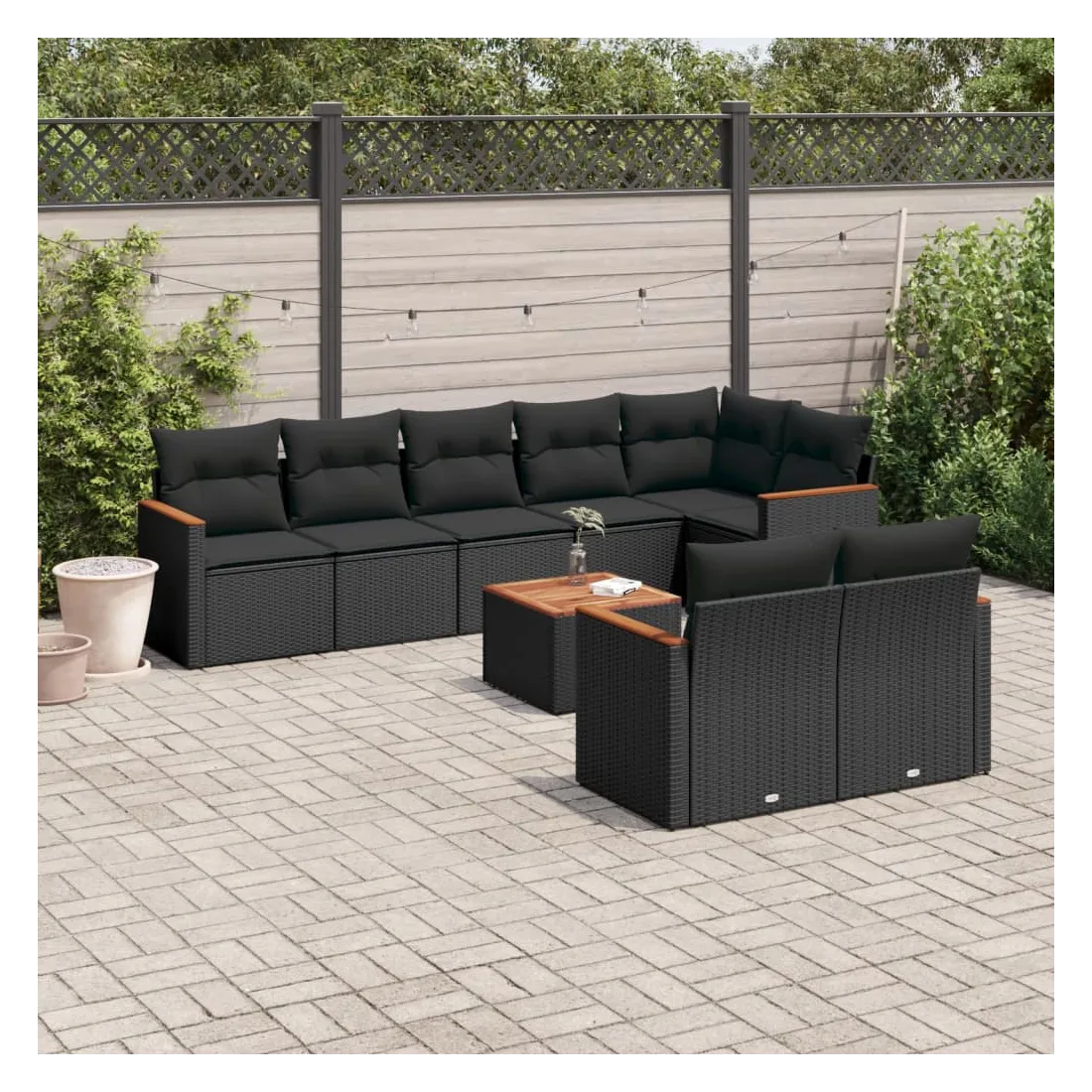 Cet ensemble de canapés de jardin est le complément parfait de votre arrière-cour, terrasse ou patio, offrant un espace confortable et accueillant pour discuter avec la famille et les amis ou simplement se détendre et profiter de l'extérieur. Matériau durable : la résine tressée, également connue sous le nom de poly rotin, est un matériau synthétique solide et nécessitant peu d'entretien qui ressemble au rotin naturel. Il est léger, facile à nettoyer et couramment utilisé pour les meubles d'extérieur en raison de sa durabilité et de ses propriétés de résistance aux intempéries.Dessus stable et facile à nettoyer : cette table de jardin a un dessus en bois d'acacia robuste, durable et facile à nettoyer avec un chiffon humide.Housse amovible et lavable : ces coussins de siège sont dotés de housses amovibles pour un lavage et un entretien faciles.Cadre robuste et stable : le cadre en acier enduit de poudre assure la solidité et la stabilité du meuble de jardin pour une utilisation quotidienne à l'extérieur.Conception modulaire : cet ensemble de meubles d'extérieur a une conception modulaire, ce qui le rend complètement flexible et facile à déplacer, afin que vous puissiez créer un agencement de meubles d'extérieur personnalisé. Bon à savoir :Pour que vos meubles d'extérieur restent beaux, nous vous recommandons de les protéger avec une housse imperméable.