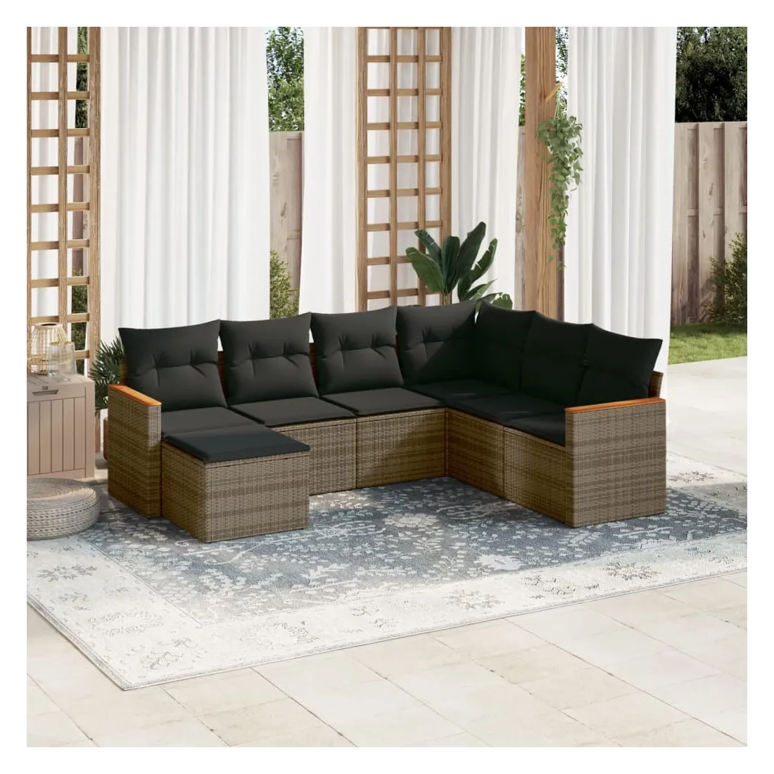 Cet ensemble de canapés de jardin est le complément parfait de votre arrière-cour, terrasse ou patio, offrant un espace confortable et accueillant pour discuter avec la famille et les amis ou simplement se détendre et profiter de l'extérieur. Matériau durable : la résine tressée, également connue sous le nom de poly rotin, est un matériau synthétique solide et nécessitant peu d'entretien qui ressemble au rotin naturel. Il est léger, facile à nettoyer et couramment utilisé pour les meubles d'extérieur en raison de sa durabilité et de ses propriétés de résistance aux intempéries.Housse amovible et lavable : ces coussins de siège sont dotés de housses amovibles pour un lavage et un entretien faciles.Cadre robuste et stable : le cadre en acier enduit de poudre assure la solidité et la stabilité du meuble de jardin pour une utilisation quotidienne à l'extérieur.Conception modulaire : cet ensemble de meubles d'extérieur a une conception modulaire, ce qui le rend complètement flexible et facile à déplacer, afin que vous puissiez créer un agencement de meubles d'extérieur personnalisé. Bon à savoir :Pour que vos meubles d'extérieur restent beaux, nous vous recommandons de les protéger avec une housse imperméable.