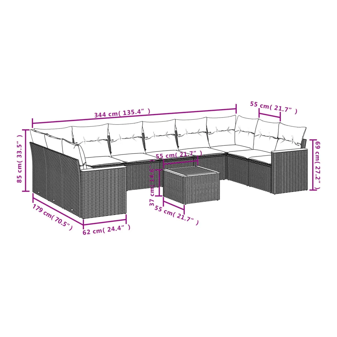 - Dimensions : 55 x 55 x 37 cm (L x l x H)