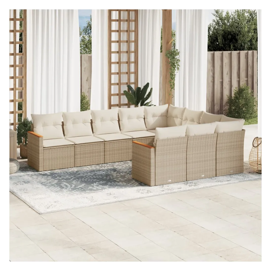 Salon de jardin avec coussins 10 pcs beige résine tressée
