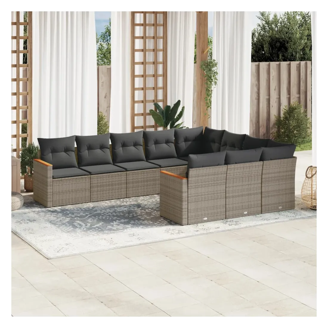 Cet ensemble de canapés de jardin est le complément parfait de votre arrière-cour, terrasse ou patio, offrant un espace confortable et accueillant pour discuter avec la famille et les amis ou simplement se détendre et profiter de l'extérieur. Matériau durable : la résine tressée, également connue sous le nom de poly rotin, est un matériau synthétique solide et nécessitant peu d'entretien qui ressemble au rotin naturel. Il est léger, facile à nettoyer et couramment utilisé pour les meubles d'extérieur en raison de sa durabilité et de ses propriétés de résistance aux intempéries.Housse amovible et lavable : ces coussins de siège sont dotés de housses amovibles pour un lavage et un entretien faciles.Cadre robuste et stable : le cadre en acier enduit de poudre assure la solidité et la stabilité du meuble de jardin pour une utilisation quotidienne à l'extérieur.Conception modulaire : cet ensemble de meubles d'extérieur a une conception modulaire, ce qui le rend complètement flexible et facile à déplacer, afin que vous puissiez créer un agencement de meubles d'extérieur personnalisé. Bon à savoir :Pour que vos meubles d'extérieur restent beaux, nous vous recommandons de les protéger avec une housse imperméable.