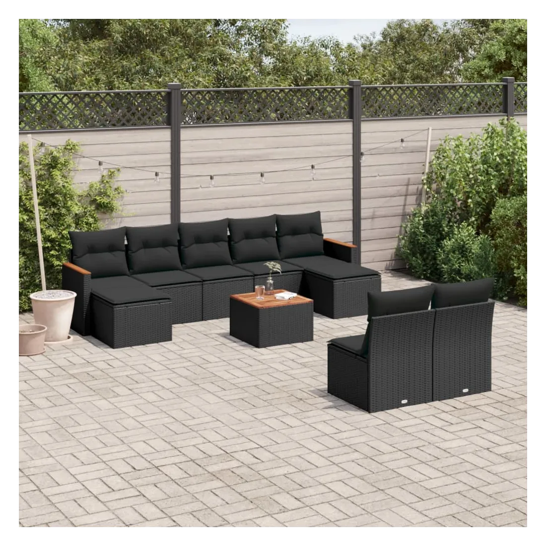 Cet ensemble de canapés de jardin est le complément parfait de votre arrière-cour, terrasse ou patio, offrant un espace confortable et accueillant pour discuter avec la famille et les amis ou simplement se détendre et profiter de l'extérieur. Matériau durable : la résine tressée, également connue sous le nom de poly rotin, est un matériau synthétique solide et nécessitant peu d'entretien qui ressemble au rotin naturel. Il est léger, facile à nettoyer et couramment utilisé pour les meubles d'extérieur en raison de sa durabilité et de ses propriétés de résistance aux intempéries.Dessus stable et facile à nettoyer : cette table de jardin a un dessus en bois d'acacia robuste, durable et facile à nettoyer avec un chiffon humide.Housse amovible et lavable : ces coussins de siège sont dotés de housses amovibles pour un lavage et un entretien faciles.Cadre robuste et stable : le cadre en acier enduit de poudre assure la solidité et la stabilité du meuble de jardin pour une utilisation quotidienne à l'extérieur.Conception modulaire : cet ensemble de meubles d'extérieur a une conception modulaire, ce qui le rend complètement flexible et facile à déplacer, afin que vous puissiez créer un agencement de meubles d'extérieur personnalisé. Bon à savoir :Pour que vos meubles d'extérieur restent beaux, nous vous recommandons de les protéger avec une housse imperméable.