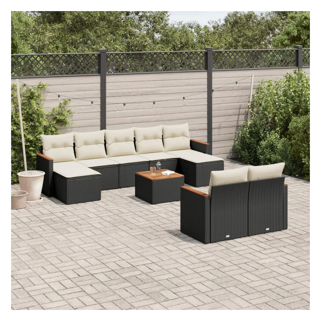 Cet ensemble de canapés de jardin est le complément parfait de votre arrière-cour, terrasse ou patio, offrant un espace confortable et accueillant pour discuter avec la famille et les amis ou simplement se détendre et profiter de l'extérieur. Matériau durable : la résine tressée, également connue sous le nom de poly rotin, est un matériau synthétique solide et nécessitant peu d'entretien qui ressemble au rotin naturel. Il est léger, facile à nettoyer et couramment utilisé pour les meubles d'extérieur en raison de sa durabilité et de ses propriétés de résistance aux intempéries.Dessus stable et facile à nettoyer : cette table de jardin a un dessus en bois d'acacia robuste, durable et facile à nettoyer avec un chiffon humide.Housse amovible et lavable : ces coussins de siège sont dotés de housses amovibles pour un lavage et un entretien faciles.Cadre robuste et stable : le cadre en acier enduit de poudre assure la solidité et la stabilité du meuble de jardin pour une utilisation quotidienne à l'extérieur.Conception modulaire : cet ensemble de meubles d'extérieur a une conception modulaire, ce qui le rend complètement flexible et facile à déplacer, afin que vous puissiez créer un agencement de meubles d'extérieur personnalisé. Bon à savoir :Pour que vos meubles d'extérieur restent beaux, nous vous recommandons de les protéger avec une housse imperméable.