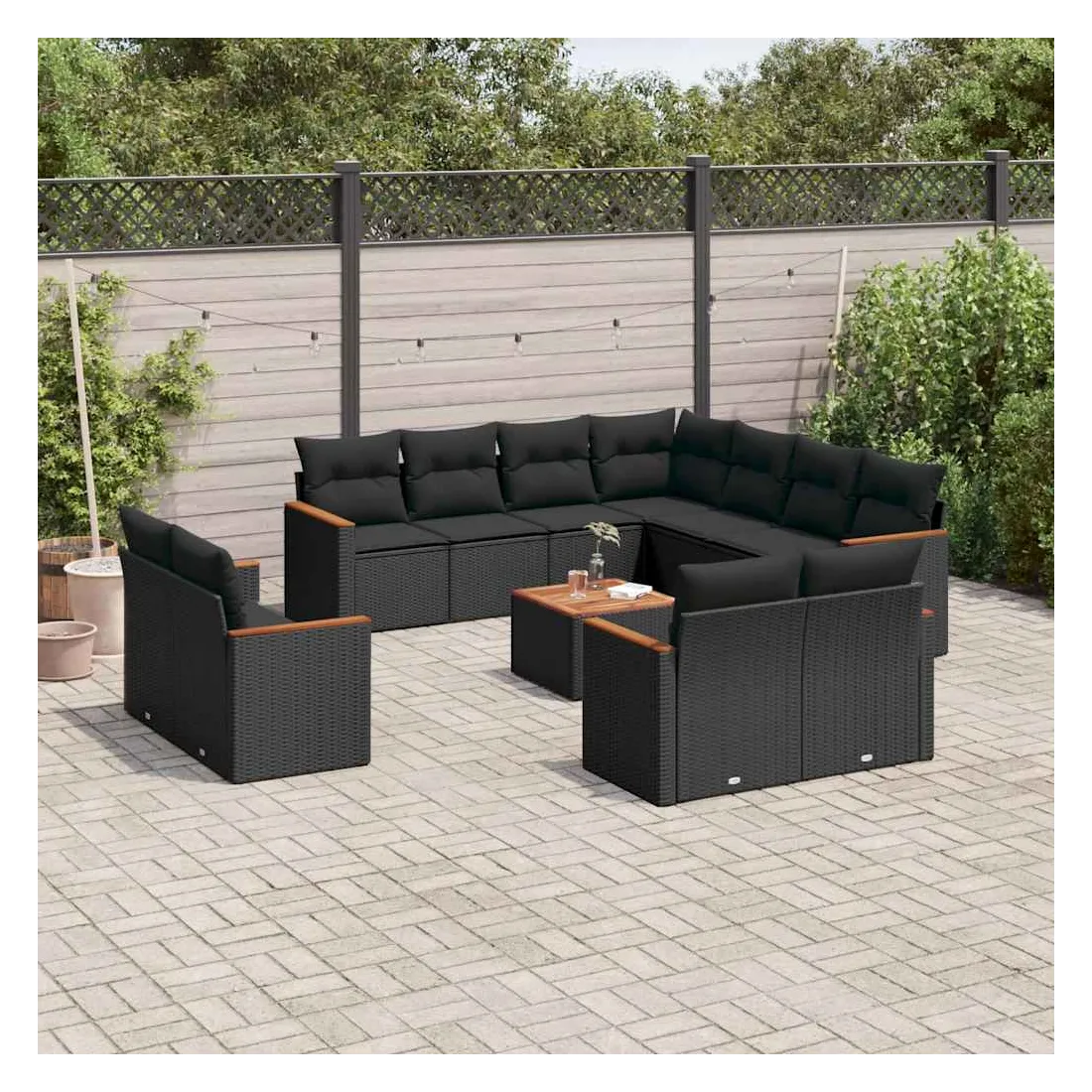 Cet ensemble de canapés de jardin est le complément parfait de votre arrière-cour, terrasse ou patio, offrant un espace confortable et accueillant pour discuter avec la famille et les amis ou simplement se détendre et profiter de l'extérieur. Matériau durable : la résine tressée, également connue sous le nom de poly rotin, est un matériau synthétique solide et nécessitant peu d'entretien qui ressemble au rotin naturel. Il est léger, facile à nettoyer et couramment utilisé pour les meubles d'extérieur en raison de sa durabilité et de ses propriétés de résistance aux intempéries.Dessus stable et facile à nettoyer : cette table de jardin a un dessus en bois d'acacia robuste, durable et facile à nettoyer avec un chiffon humide.Housse amovible et lavable : ces coussins de siège sont dotés de housses amovibles pour un lavage et un entretien faciles.Cadre robuste et stable : le cadre en acier enduit de poudre assure la solidité et la stabilité du meuble de jardin pour une utilisation quotidienne à l'extérieur.Conception modulaire : cet ensemble de meubles d'extérieur a une conception modulaire, ce qui le rend complètement flexible et facile à déplacer, afin que vous puissiez créer un agencement de meubles d'extérieur personnalisé. Bon à savoir :Pour que vos meubles d'extérieur restent beaux, nous vous recommandons de les protéger avec une housse imperméable.