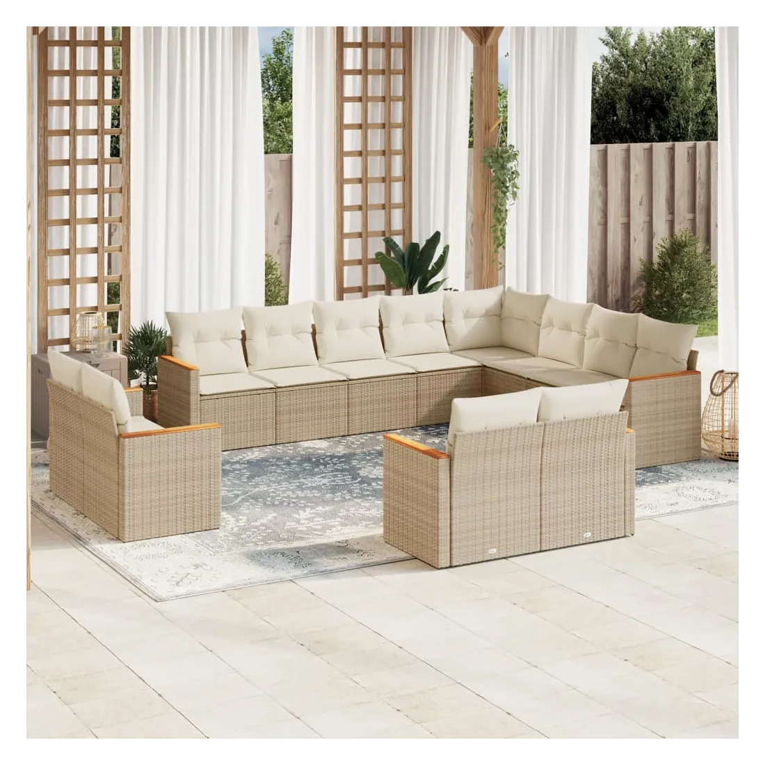 Cet ensemble de canapés de jardin est le complément parfait de votre arrière-cour, terrasse ou patio, offrant un espace confortable et accueillant pour discuter avec la famille et les amis ou simplement se détendre et profiter de l'extérieur. Matériau durable : la résine tressée, également connue sous le nom de poly rotin, est un matériau synthétique solide et nécessitant peu d'entretien qui ressemble au rotin naturel. Il est léger, facile à nettoyer et couramment utilisé pour les meubles d'extérieur en raison de sa durabilité et de ses propriétés de résistance aux intempéries.Housse amovible et lavable : ces coussins de siège sont dotés de housses amovibles pour un lavage et un entretien faciles.Cadre robuste et stable : le cadre en acier enduit de poudre assure la solidité et la stabilité du meuble de jardin pour une utilisation quotidienne à l'extérieur.Conception modulaire : cet ensemble de meubles d'extérieur a une conception modulaire, ce qui le rend complètement flexible et facile à déplacer, afin que vous puissiez créer un agencement de meubles d'extérieur personnalisé. Bon à savoir :Pour que vos meubles d'extérieur restent beaux, nous vous recommandons de les protéger avec une housse imperméable.