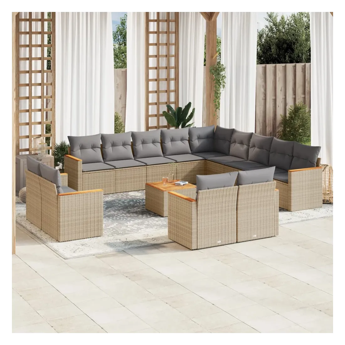 Salon de jardin et coussins 14 pcs mélange beige résine tressée