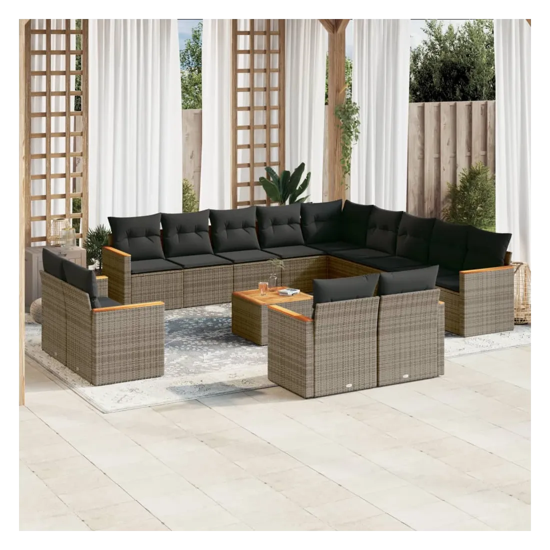 Cet ensemble de canapés de jardin est le complément parfait de votre arrière-cour, terrasse ou patio, offrant un espace confortable et accueillant pour discuter avec la famille et les amis ou simplement se détendre et profiter de l'extérieur. Matériau durable : la résine tressée, également connue sous le nom de poly rotin, est un matériau synthétique solide et nécessitant peu d'entretien qui ressemble au rotin naturel. Il est léger, facile à nettoyer et couramment utilisé pour les meubles d'extérieur en raison de sa durabilité et de ses propriétés de résistance aux intempéries.Dessus stable et facile à nettoyer : cette table de jardin a un dessus en bois d'acacia robuste, durable et facile à nettoyer avec un chiffon humide.Housse amovible et lavable : ces coussins de siège sont dotés de housses amovibles pour un lavage et un entretien faciles.Cadre robuste et stable : le cadre en acier enduit de poudre assure la solidité et la stabilité du meuble de jardin pour une utilisation quotidienne à l'extérieur.Conception modulaire : cet ensemble de meubles d'extérieur a une conception modulaire, ce qui le rend complètement flexible et facile à déplacer, afin que vous puissiez créer un agencement de meubles d'extérieur personnalisé. Bon à savoir :Pour que vos meubles d'extérieur restent beaux, nous vous recommandons de les protéger avec une housse imperméable.