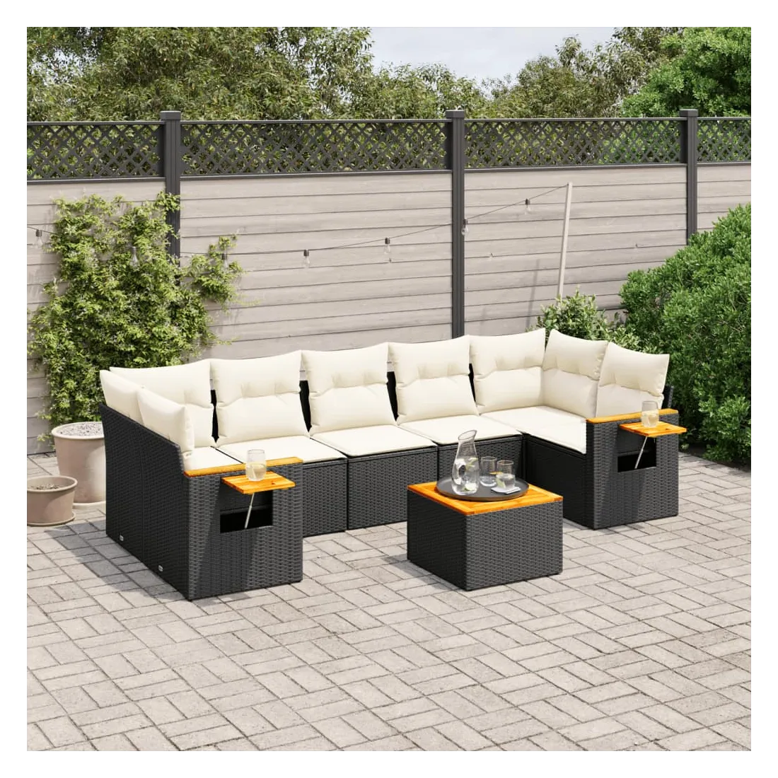 Cet ensemble de canapés de jardin est le complément parfait de votre arrière-cour, terrasse ou patio, offrant un espace confortable et accueillant pour discuter avec la famille et les amis ou simplement se détendre et profiter de l'extérieur. Matériau durable : la résine tressée, également connue sous le nom de poly rotin, est un matériau synthétique solide et nécessitant peu d'entretien qui ressemble au rotin naturel. Il est léger, facile à nettoyer et couramment utilisé pour les meubles d'extérieur en raison de sa durabilité et de ses propriétés de résistance aux intempéries.Dessus stable et facile à nettoyer : cette table de jardin a un dessus en bois d'acacia robuste, durable et facile à nettoyer avec un chiffon humide.Table d'appoint pratique : ce mobilier d'extérieur comprend une table d'appoint pliable avec un ressort à gaz sur les accoudoirs, offrant un endroit pratique pour garder vos essentiels à portée de main.Housse amovible et lavable : ces coussins de siège sont dotés de housses amovibles pour un lavage et un entretien faciles.Conception modulaire : cet ensemble de meubles d'extérieur a une conception modulaire, ce qui le rend complètement flexible et facile à déplacer, afin que vous puissiez créer un agencement de meubles d'extérieur personnalisé. Bon à savoir :Pour que vos meubles d'extérieur restent beaux, nous vous recommandons de les protéger avec une housse imperméable.