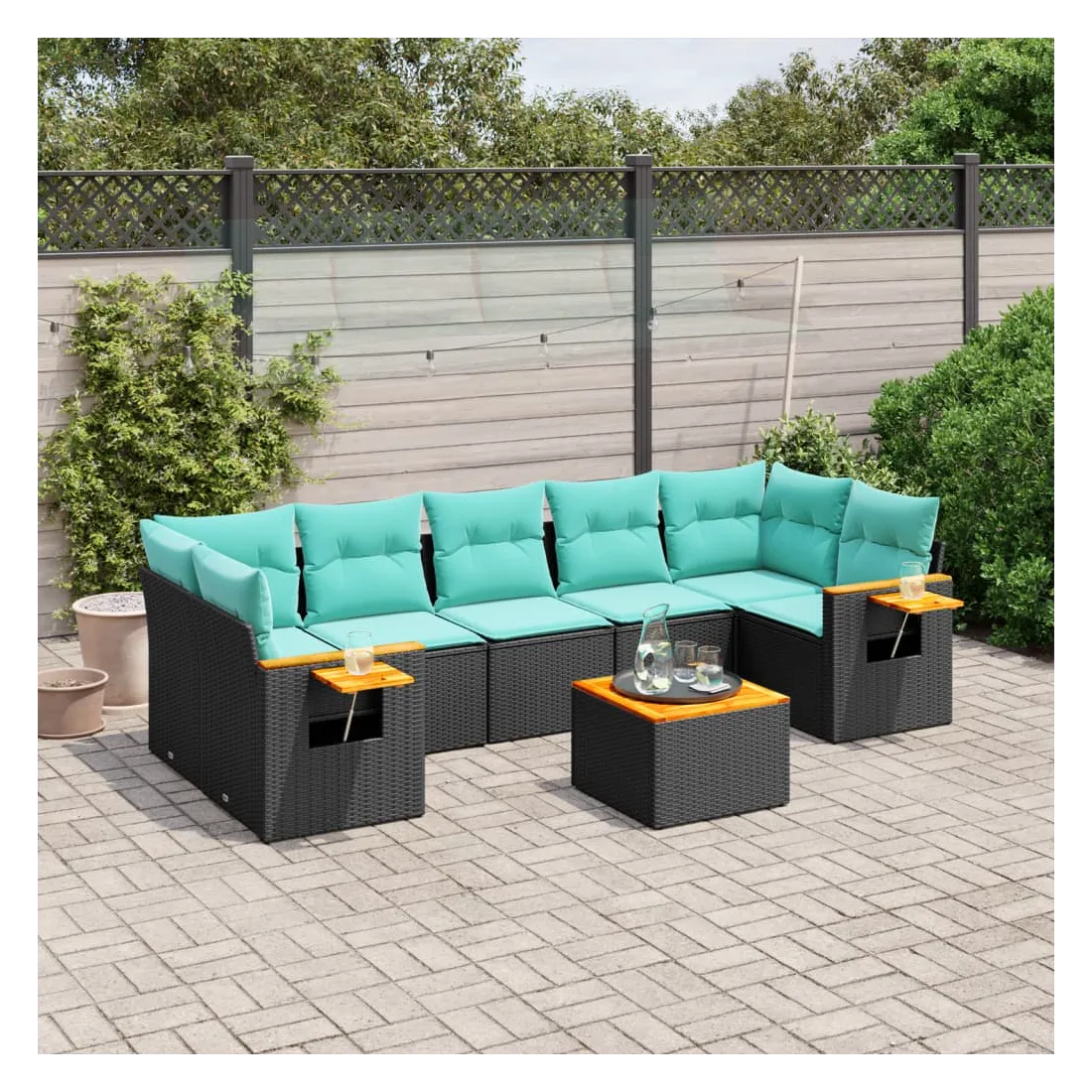Cet ensemble de canapés de jardin est le complément parfait de votre arrière-cour, terrasse ou patio, offrant un espace confortable et accueillant pour discuter avec la famille et les amis ou simplement se détendre et profiter de l'extérieur. Matériau durable : la résine tressée, également connue sous le nom de poly rotin, est un matériau synthétique solide et nécessitant peu d'entretien qui ressemble au rotin naturel. Il est léger, facile à nettoyer et couramment utilisé pour les meubles d'extérieur en raison de sa durabilité et de ses propriétés de résistance aux intempéries.Dessus stable et facile à nettoyer : cette table de jardin a un dessus en bois d'acacia robuste, durable et facile à nettoyer avec un chiffon humide.Table d'appoint pratique : ce mobilier d'extérieur comprend une table d'appoint pliable avec un ressort à gaz sur les accoudoirs, offrant un endroit pratique pour garder vos essentiels à portée de main.Housse amovible et lavable : ces coussins de siège sont dotés de housses amovibles pour un lavage et un entretien faciles.Conception modulaire : cet ensemble de meubles d'extérieur a une conception modulaire, ce qui le rend complètement flexible et facile à déplacer, afin que vous puissiez créer un agencement de meubles d'extérieur personnalisé. Bon à savoir :Pour que vos meubles d'extérieur restent beaux, nous vous recommandons de les protéger avec une housse imperméable.
